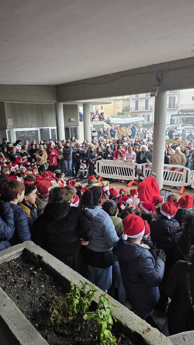 Cappellini rossi e tutti in fila sulle gradinate di Palazzo Civico. Questa mattina bambine e bambini della Scuola Primaria si sono esibiti in una sequenza di canti natalizi preceduti da messaggi di pace e speranza."Queste canzoni sono un invito a riflettere sull'importanza di amore, unione, connessione con gli altri. E se ancora vi sembra che manchi qualcosa, basta aggiungere l'essenza del Natale", ha esordito uno degli alunni in apertura dello spettacolo.Un folto pubblico ha riempito l'atrio del Comune per assistere a uno dei momenti più sentiti dell'anno. "Con l'avvicinarsi del Natale – ha dichiarato il sindaco Roberto Valettini - quei sentimenti di serenità, rispetto e fratellanza si sentono di più. Vedere tutti questi bambini affettuosi l'uno all'altro non può che farci piacere. Il loro messaggio rappresenta l'insieme dei valori cui ispirare la nostra vita e per questo li ringrazio, come anche gli insegnanti e le loro famiglie che sono qui numerose e danno il senso della comunità: cosa di cui oggi abbiamo davvero molto bisogno nel mondo".I bambini sono stati accompagnati da scuola al Comune dalle insegnanti e dalla Polizia Locale. "Il lavoro che abbiamo svolto è stato impegnativo - ha spiegato una delle insegnanti - Lo spettacolo di oggi è parte di un progetto che ci ha portato a condividere un lavoro giorno dopo giorno sui valori della fratellanza, della pace, dell'amicizia e della condivisione. I bambini hanno riflettuto su questi valori attraverso una narrazione e riproducendoli su alcune decorazioni esposte nella scuola". Ha poi concluso l'insegnante "Molto spesso noi adulti dovremmo imparare proprio dai bambini".