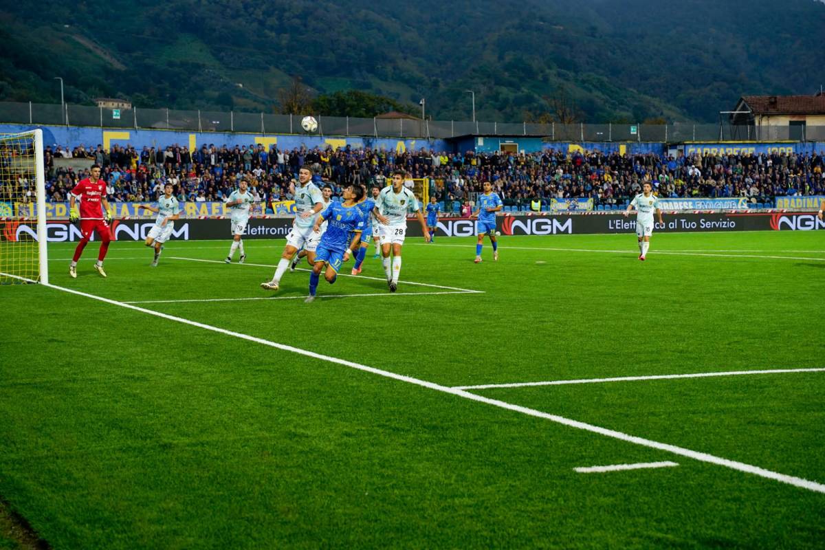 Allo stadio dei Marmi, la Carrarese perde per 2-0 contro il Frosinone, seconda sconfitta consecutiva per gli apuani, che scivolano al nono posto. Gara molto nervosa, con tante interruzioni e poche emozioni. Protagonista del match tra Carrarese e Frosinone è stato il direttore di gara Livio Marinelli: tre calci di rigori assegnati e due annullati dal var. Nel finale del primo tempo, su calcio di rigore Calo' porta in vantaggio il Frosinone . Nel secondo tempo, per mezz'ora la Carrarese gioca in superiorità numerica, dopo l'espulsione di Oyono, ma poco prima del novantesimo, un contropiede chirurgico di Ghedjemis chiude i giochi. Contro il Frosinone non c'è Hasa: il talento scuola Napoli ha accusato un problema fisico. Calabro schiera in porta Bleve, con Ruggeri-Imperiale-Illanes a completare la difesa. Sugli esterni Cicconi-Zanon e al centro la coppia Zuelli-Schiavi. In attacco Arena e Finotto agiscono dietro Abiuso.