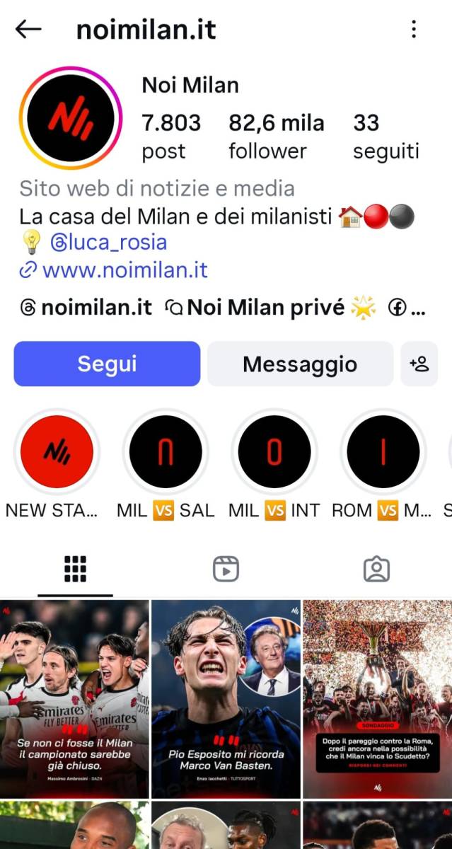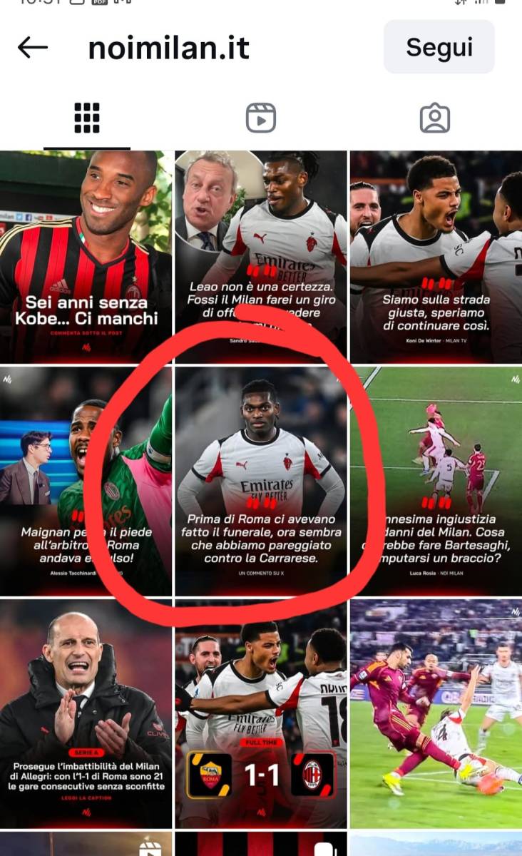 Il sito Instagram Noi Milan sminuisce la Carrarese con una frase attribuita a Leao