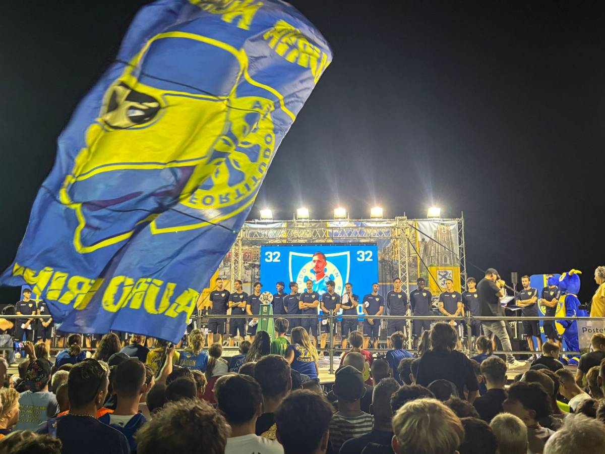 Secondo anno consecutivo per la presentazione della squadra della Carrarese alla Carrara Bier Fest: bissato il successo dello scorso anno, con oltre un migliaio di tifosi accorsi per salutare i giocatori che affronteranno, per la seconda volta consecutiva, la serie B. Una grandissima festa con un pizzico di sapore scaramantico beneagurante - come lo è stata un anno fa - che propizi anche quest'anno un buon campionato per gli azzurri e l'ulteriore permanenza nella serie cadetta. I tifosi hanno riempito il grande parterre di tavoli della festa della birra con largo anticipo rispetto all'arrivo dei giocatori ed hanno intonato cori da stadio indirizzati al presidente Manrico Gemignani "Portaci in Europa" e lanciato fumogeni. Non è mancata una nota polemica per la situazione dello stadio dei marmi, non ancora adeguato alla serie B: "Rivogliamo la nostra casa". Ma il clima dominante è stato quello della gioia, anche perchè, almeno l'avvio del campionato 2025-'26 della Carrarese è già oltre le migliori aspettative con la insperata vittoria in trasferta contro i nemici storici dello Spezia e con il meno bello pareggio in casa con il Padova che ha comunque permesso alla Carrarese di avere 4 preziosi punti in classifica dopo le prime due giornate. I giocatori e Mister Antonio Calabro sono stati chiamati sul palco da Andrea Secci e da Claudia Cella. Calabro ha assicurato l'impegno a dare nuove soddisfazioni ai tifosi, specilamente ai molti bambini e ragazzi che proprio grazie alla promozione in B si sono avvicinati alla squadra. Manrico Gemignani ha ringraziato tutto lo staff e accolto l'invito a portare la squadra verso traguardi ancora più grandi. Infine il prefetto Guido Aprea ha elogiato i tifosi gialloazzurri per la correttezza sempre dimostrata nelle partite.