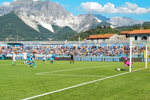 E' amara la quarta giornata del campionato Serie BKT 2025/2026 per la Carrarese che rimedia la prima sconfitta, nonostante giocasse in casa e contro un avversario in dieci per oltre metà della partita. L'Avellino, la squadra neopromossa guidata da Raffaele Biancolino, non molla mai e vince allo stadio dei Marmi per 4 a 3. Per la seconda volta, gli azzurri si sono trovati in superiorità numerica nel proprio stadio e non sono riusciti a sfruttare il vantaggio. Col Padova, nella partita d'esordio al dei Marmi, reduci dall'impresa con lo Spezia, gli azzurri erano riusciti a pareggiare. Oggi, con l'Avellino sono riusciti solo a contenere il risultato che per diversi minuti è stato di 4 a 2 a favore dei campani. Sicuramente ci sarà molto da rivedere sia per Mister Calabro, sia per i giocatori. La partita di domenica 22 settembre non era partita male. La Carrarase passa per prima in vantaggio al 17' con un'azione ben orchestrata da Bouah e finalizzata da Abiuso su assist di Sekulov. Ma neanche il tempo di esultare e, un minuto dopo, i campani sono già davanti alla porta di Bleve, battuto da un tiro perfetto di Valerio Crespi. Alla luce del risultato finale si intravede come quell'immediato ribaltamento di risultato, su cui la difesa azzurra ha un po' di responsabilità, sarebbe stato da interpretare come un segno, se non altro del carattere indomito degli avellinesi. La Carrarese torna presto in vantaggio al 22' su rigore, per fallo in aerea su Imperiale e Cicconi non sbaglia dagli 11 metri e riporta in vantaggio la squadra locale. Tutto sembra girare nel modo giusto e a sancirlo arrivaa al 29' l'espulsione di Enrici nelle fila dell'Avellino per somma di ammonizioni rimediate nel tentativo di fermare le incursioni pericolose di Sekulov. Ma a questo punto la partita cambia faccia e i campani cominciano a giocare come se la situazione fosse a parti invertite e la Carrarese comincia a subire una determinazione e una voglia di vincere che, tra i suoi, sembra un po' smarrita. Sette minuti e l'Avellino, al 36', pareggia grazie a un autogol di ruggeri, che, nel tentativo di neutralizzare un insidioso cross di Missori, tocca male di testa e spiazza Bleve. L'intervallo arriva dopo una buona azione di Bouah e Cicconi che però non si conclude in rete. Calbro comincia a cambiare e fa entrare Arena per Bozhanaj, gli azzurri attaccano a testa bassa con un Cicconi tra i migliori in campo, ma sempre senza precisione. Anche Arena si mette in luce con un tiro che sfiora la traversa, ma il risultato sembra non sbloccarsi dal pareggio fino a quando, a cambiare il corso della gara, arriva il gol di Russo, lanciato da Crespi e non arginato dalla difesa della Carrarese. Al 57' l'Avellino, in dieci, è in vantaggio 3 a 2 sulla Carrarese, che, purtroppo, rimane stordita dalla reazione dei campani e undici minuti dopo prende anche il quarto gol degli ospiti grazie a un'azione di Russo conclusa da Besaggio. Si attende una reazione dei ragazzi di Mister Calabro, che arriva, ma, forse un po' troppo tardi: al 79' Schiavi accorcia le distanze sul lancio di Arena. Il tempo ci sarebbe ancora, almeno per pareggiare e la Carrarese sfiora il 4 a 4 prima con Abiuso che, all'86' mette fuori di un soffio, e poi con Finotto che centra lo specchio ma non supera il portiere campano Iannarilli. Il generoso recupero di sei minuti non basta a colmare lo svantaggio e la partita si chiude senza ulteriori cambiamenti di risultato. Prima sconfitta della Carrarese che potrà recuperare al prossimo turno in casa dell'Empoli.