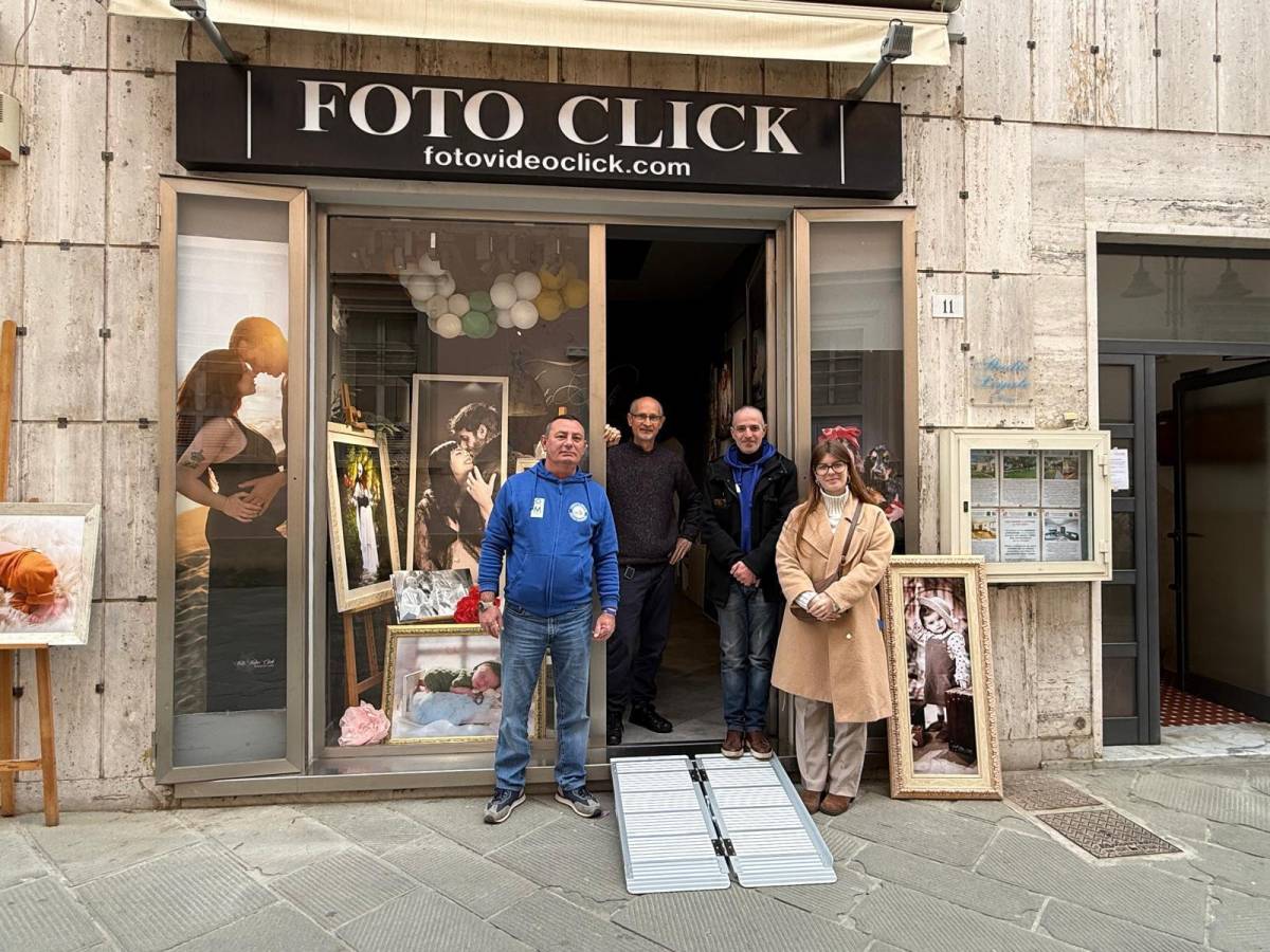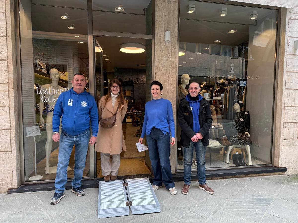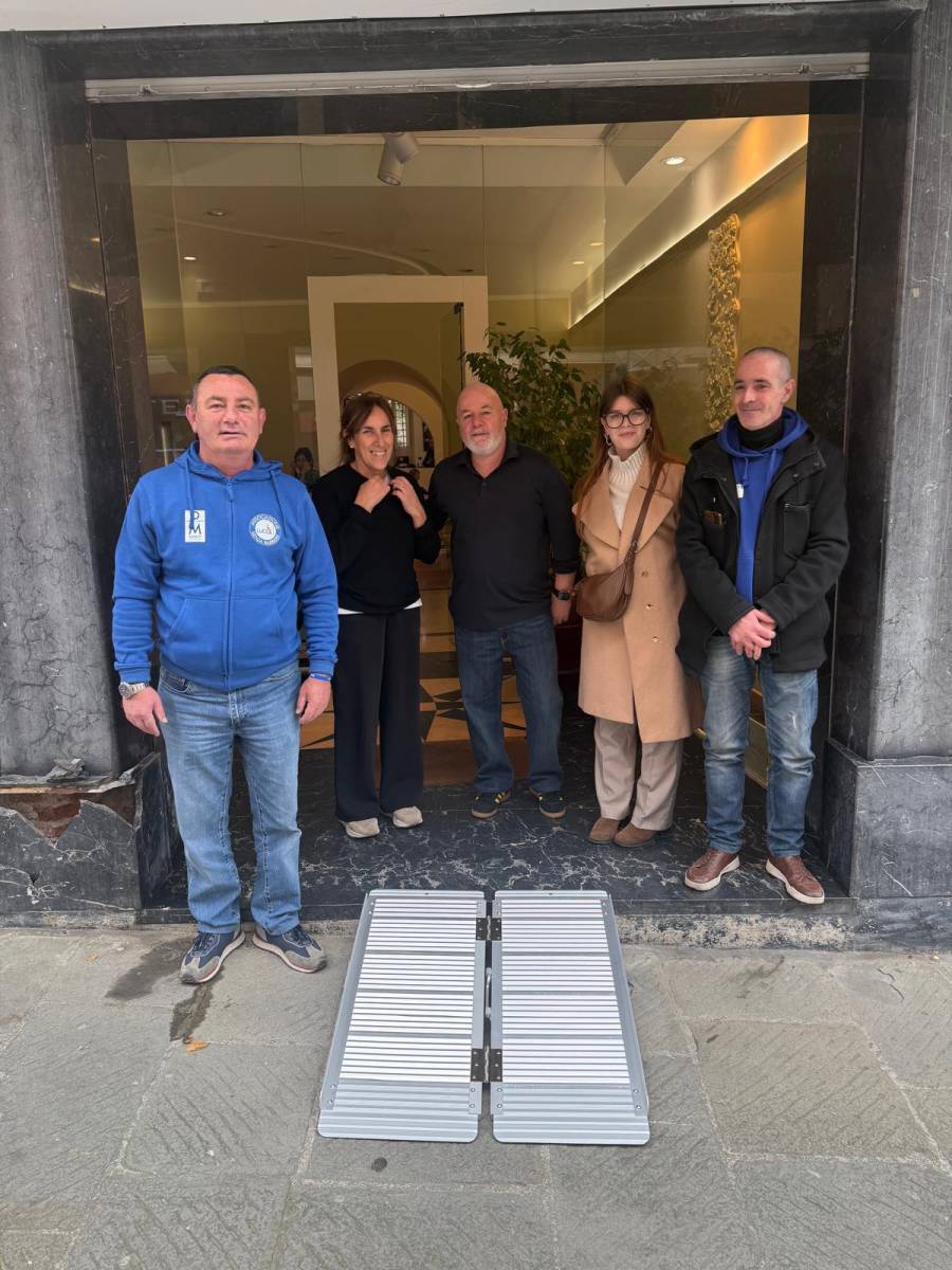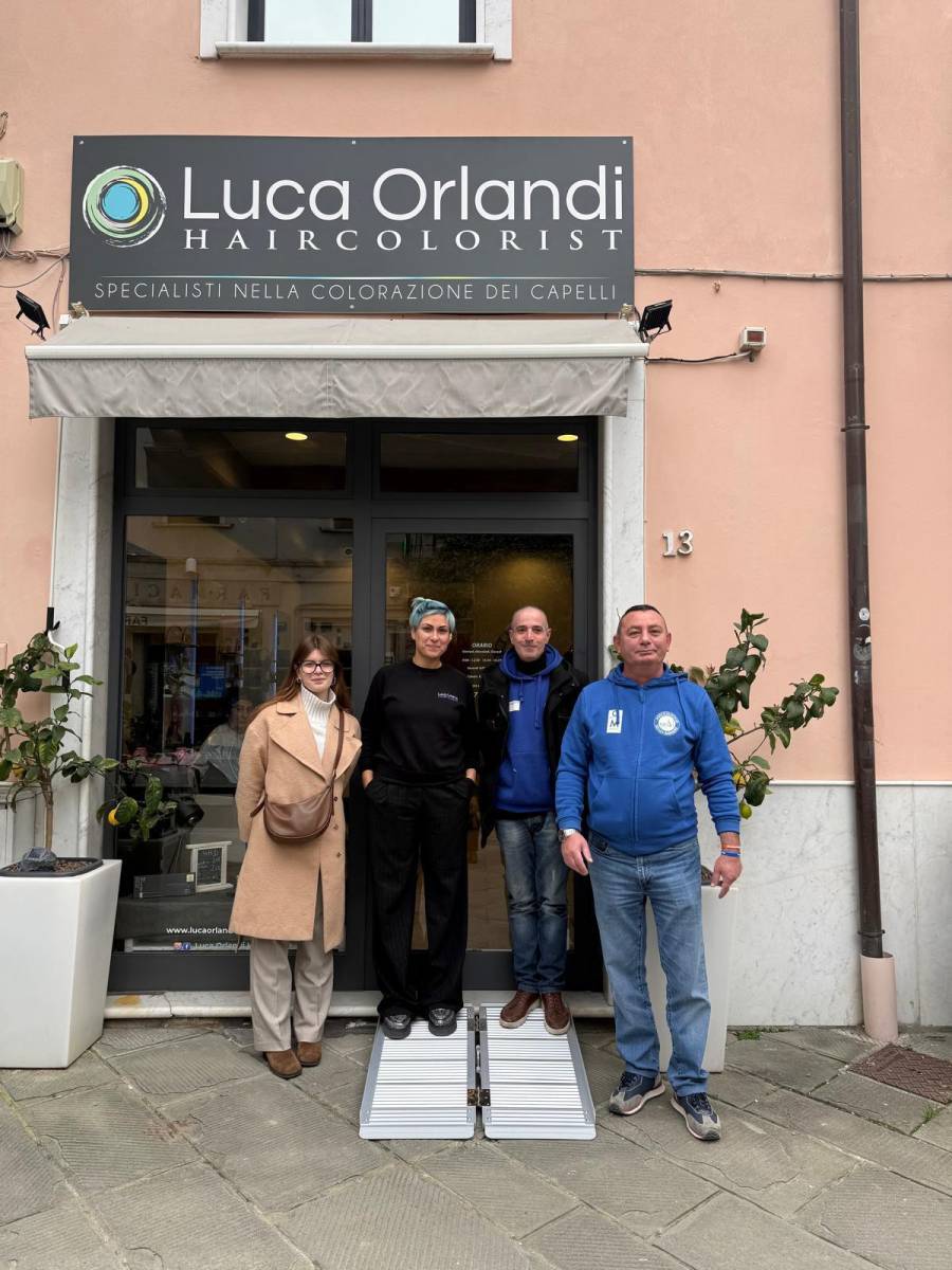 Diciassette pedane per l'accesso dei disabili consegnate da Luccasenzabarriere ODV ai negozi di Massa