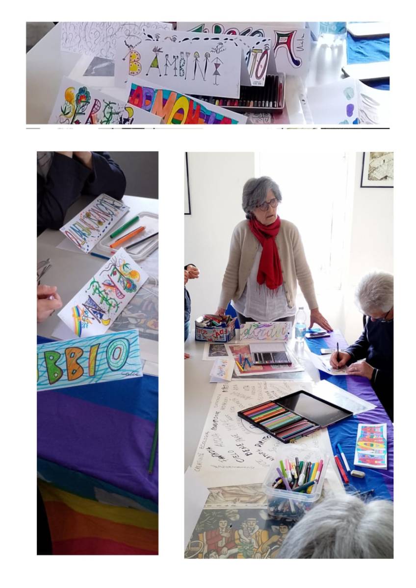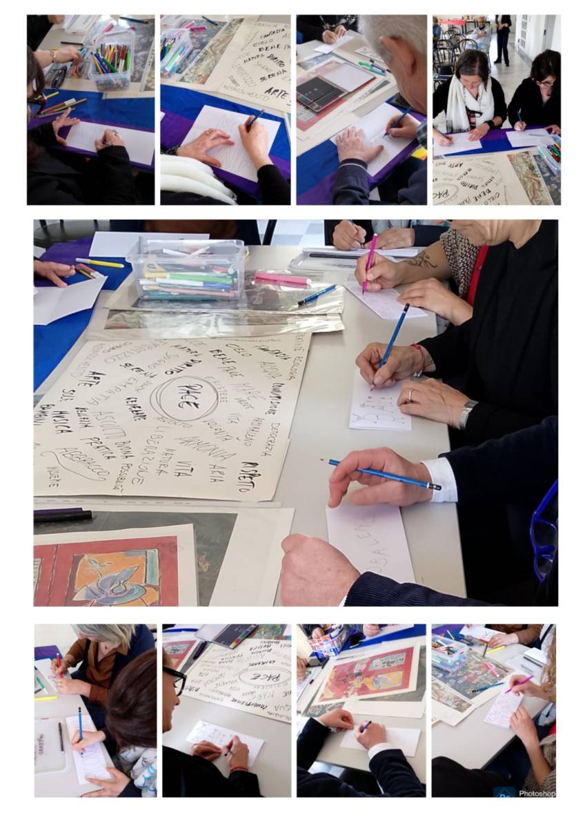 Nel pomeriggio, i partecipanti si sono impegnati nelle attività laboratoriali previste, dedicate sia alla riflessione che alla produzione di elaborati grafici e testuali curate da Carlo Testi (I Cento Modi Per Dire La Stessa Cosa) e da Costanza Pandolfini (MCE MS _ Sulla Guerra | Per la Pace _ Le Parole Che Contano).