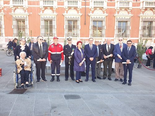 Dopo di loro sono intervenuti il presidente della Consulta studentesca provinciale, Leonardo Barni dell’Istituto Minuto, e Martina Lepora, studentessa del Liceo Classico Rossi e membro dell’Ufficio di Presidenza del Parlamento regionale degli studenti toscani, che hanno spronato i loro coetanei a sentirsi protagonisti attivi e responsabili della vita civica. Nel suo intervento, il Prefetto Aprea ha poi ricordato una celebre frase di Albert Einstein: "Non ho idea di quali armi serviranno per combattere la Terza Guerra Mondiale, ma la quarta sarà combattuta coi bastoni e con le pietre" come monito contro l’uso distruttivo delle armi e a difesa dell’umanità. "Ringrazio le Forze Armate – ha aggiunto Aprea – che ci hanno consentito di vivere in un Paese libero, assicurando i valori sanciti nella Carta costituzionale. Vorrei ricordare anche il loro contributo prezioso nelle emergenze di Protezione Civile."Il Prefetto ha poi presentato le otto persone insignite dal Presidente della Repubblica per essersi distinte per particolari azioni di servizio e valore.