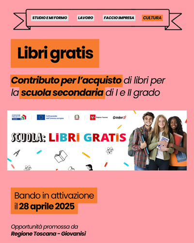 Il comune di Carrara informa che la Regione Toscana ha attivato una nuova iniziativa denominata 'Libri Gratis', che va a sostituire il 'Pacchetto scuola' e finalizzata a sostenere le spese destinate all'acquisto di libri, materiale didattico e servizi scolastici per le studentesse e gli studenti di età inferiore ai 24 anni residenti in Toscana, iscritti a una scuola secondaria di primo o secondo grado, ovvero scuole medie e superiori, e appartenenti a un nucleo familiare con ISEE inferiore o uguale a euro 15.800. E' necessario essere iscritti all'anno scolastico 2025-2026 in un istituto scolastico pubblico o paritario secondario di primo o secondo grado con sede in Toscana.Le domande per poter accedere al contributo potranno essere presentate esclusivamente on line dalle 9 del 28 aprile e fino alle 12 del 28 maggio 2025 sul sito della Regione Toscana www.regione.toscana.it/librigratis