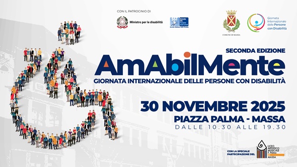 Torna anche quest’anno AmAbilMente, l’evento ideato e promosso dall’amministrazione Persiani per celebrare la Giornata Internazionale delle Persone con Disabilità, appuntamento mondiale dedicato alla piena inclusione e alla valorizzazione delle abilità di ogni persona. La seconda edizione si terrà domenica 30 novembre in piazza Palma, per l’intera giornata, dalle 10:30 alle 12:30 e dalle 15:30 alle 19:30, con un programma ricco di iniziative culturali, musicali, artistiche e sportive.Anche quest’anno la manifestazione è stata realizzata in collaborazione con circa 20 enti del Terzo Settore, associazioni del territorio che operano quotidianamente nel mondo delle disabilità. Accanto a loro saranno presenti gli uffici comunali, l’ASL Toscana Nord Ovest e gli studenti del Liceo Artistico Musicale Palma con una partecipazione speciale prevista all’interno del programma ufficiale. L’edizione 2025 è patrocinata dal Ministro per le Disabilità e dall’ASL Toscana Nord Ovest.Partner ufficiale della giornata sarà Radio Nostalgia, che nel pomeriggio sarà presente in piazza e realizzerà una diretta radiofonica dedicata all’evento, contribuendo a dare voce alle tante realtà protagoniste della giornata.