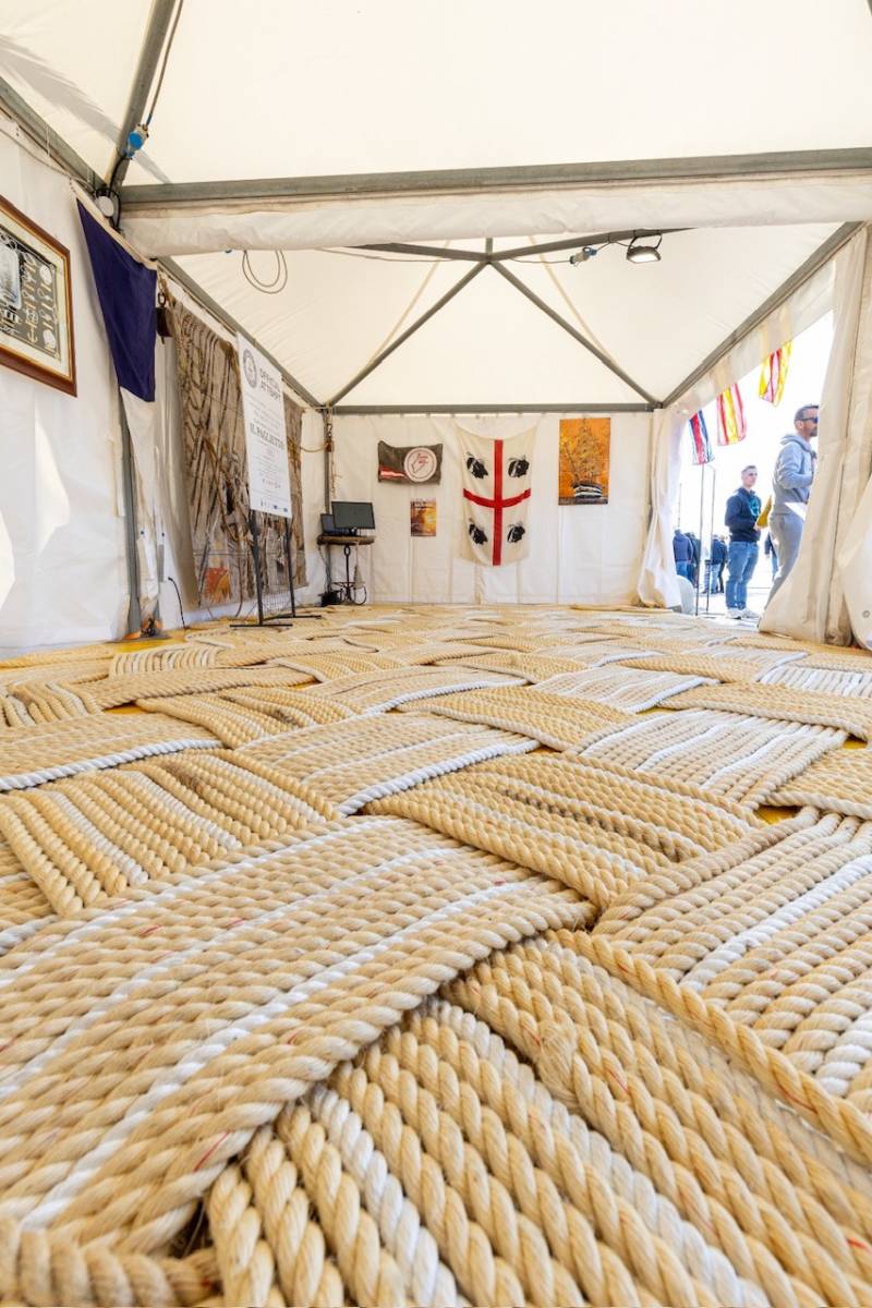 Dopo 16 ore, 14 minuti, 18 secondi e 6 primi è stato bloccato il timer che ha scandito la costruzione del paglietto dei record, sfida lanciata, in occasione del festival Velaria, dall'associazione La Nave di Carta con il Cantiere della Memoria, il nostromo Antioco Tilocca insieme agli istituti nautici della Spezia, Carrara e Olbia.Il tappeto oceanico di cime intrecciate è stato costruito da 30 ragazzi e ragazze degli istituti nautici della Spezia (IIS G.Capellini-N.Sauro), Olbia (IIS Amsicora - Indirizzo Made in Italy settore Nautico) e Carrara (IIS E. Barsanti - Indirizzo nautico M. Fiorillo) guidati dal nostromo Tilocca con l'aiuto del sottufficiale di Maristanav Spezia, Salvatore Calà.ùSotto gli occhi dei visitatori di Velarìa ha preso forma questo tappeto da record per il quale sono stati utilizzati 1,3 chilometri di cima di manila e di cima bianca sintetica (100 metri in più del previsto), pari a un peso di circa 3 quintali, la lunghezza certificata questa mattina da testimoni è di 7,90 metri contro i 7,5 previsti. Sarà questo ora il record da battere.«Salvaguardare e valorizzare il patrimonio marittimo è una delle nostre missioni, e l'arte marinaresca è, senza ombra di dubbio, un'eredità culturale che va trasmessa e fatta conoscere. Questa sfida spettacolare aveva un obiettivo: portare all'attenzione del pubblico una competenza marinara che pochi conoscono» spiega Marco Tibiletti, presidente dell'associazione La Nave di Carta della Spezia. Il paglietto, infatti, è un oggetto la cui origine si perde nella notte dei tempi: i marinai lo costruivano con spezzoni di cima per proteggere la coperta o altre parti dello scafo con una tecnica di intreccio che è poi diventata arte. L'associazione ha tra i suoi progetti permanenti il Cantiere della Memoria, spazio espositivo e centro di ricerca e diffusione delle memorie marinare, diretto da Corrado Ricci che sottolinea come: «Il patrimonio marittimo materiale e immateriale è parte della nostra cultura. Il lavoro del Cantiere della Memoria è quello di documentare, custodire e trasmettere questa eredità culturale rendendola viva, affascinante attraverso mostre, spettacoli e anche sfide come questa.»«Quello che mi ha emozionato di più è stato l'entusiasmo dei ragazzi» ha detto al termine dell'impresa il nostromo Antioco Tilocca, «Mi auguro che questa rete nata tra i nautici di Liguria, Sardegna e Toscana continui e magari si ingrandisca. C'è bisogno di formare nuove generazioni di uomini e donne di mare appassionati e competenti, capaci di guardare al futuro senza però dimenticare i saperi antichi.»La sfida non è finita. In attesa della ratifica del Guinness World Records al quale è stato inviato tutto il dossier, il paglietto verrà trasferito alla Sezione Velica della Marina Militare della Spezia. I promotori della sfida insieme alla Lega Navale della Spezia stanno mettendo a punto un progetto per il futuro e, garantiscono: «Sarà una nuova storia con una buona trama».