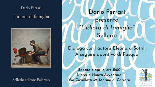 Sabato 4 aprile alle ore 11 la Libreria Nuova Avventura, a Marina di Carrara, ospiterà Dario Ferrari in occasione della presentazione del suo ultimo romanzo, L'idiota di famiglia.