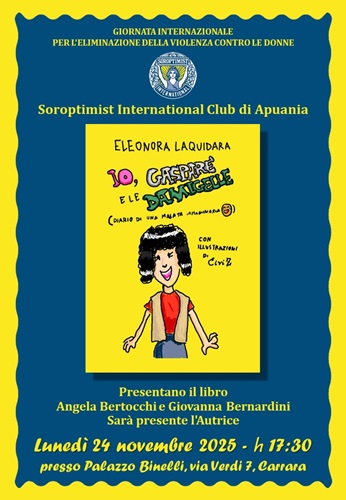 Giornata contro la violenza sulle donne: il Soroptimist International Club Apuania presenta il libro di Eleonora Laquidara a Palazzo Binelli il 24 novembre