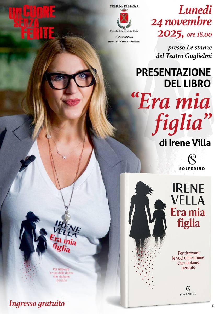 Lunedì 24 novembre alle ore 18 presso le Stanze del Teatro Guglielmi la presentazione del libro “Era mia figlia” della giornalista ed inviata Mediaset Irene Vella. La scrittrice attraverso le pagine del libro, ha voluto ridare voce a tutte le donne che hanno perso la loro vita per mano di chi diceva di amarle ed ai loro famigliari. L’ingresso è gratuito fino ad esaurimento dei posti;