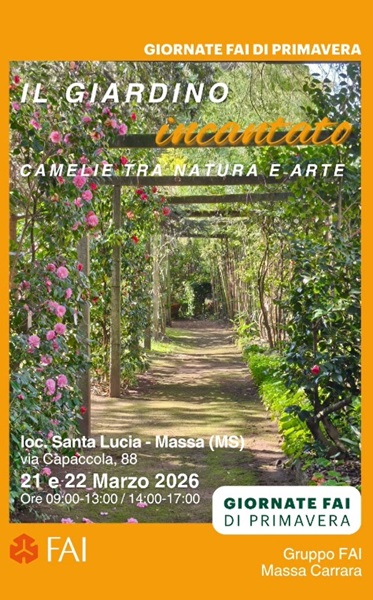 Il Gruppo FAI di Massa Carrara, ormai attivo da diversi anni nella nostra provincia, ha scelto come protagonista delle prossime Giornate di Primavera – che si svolgeranno il 21 e 22 marzo 2026 - "Il Giardino Incantato" della famiglia Lorenzetti, nel borgo di Santa Lucia a Massa - un luogo particolarmente suggestivo ed emblematico della missione del FAI, che è quella di far conoscere e rendere accessibili a un vasto pubblico siti spesso nascosti o poco conosciuti, ma che rappresentano una testimonianza di gran valore per il contesto artistico ed ambientale del territorio cui appartengono.Augurandoci che la nostra iniziativa possa contribuire a valorizzare il nostro territorio e ottenere un grande riscontro di pubblico, come sempre avvenuto nelle precedenti edizioni delle Giornate FAI, ringrazio sin d'ora per la preziosa collaborazione che vorrete riservarci nella diffusione dell'evento, indispensabile per il successo della manifestazione.