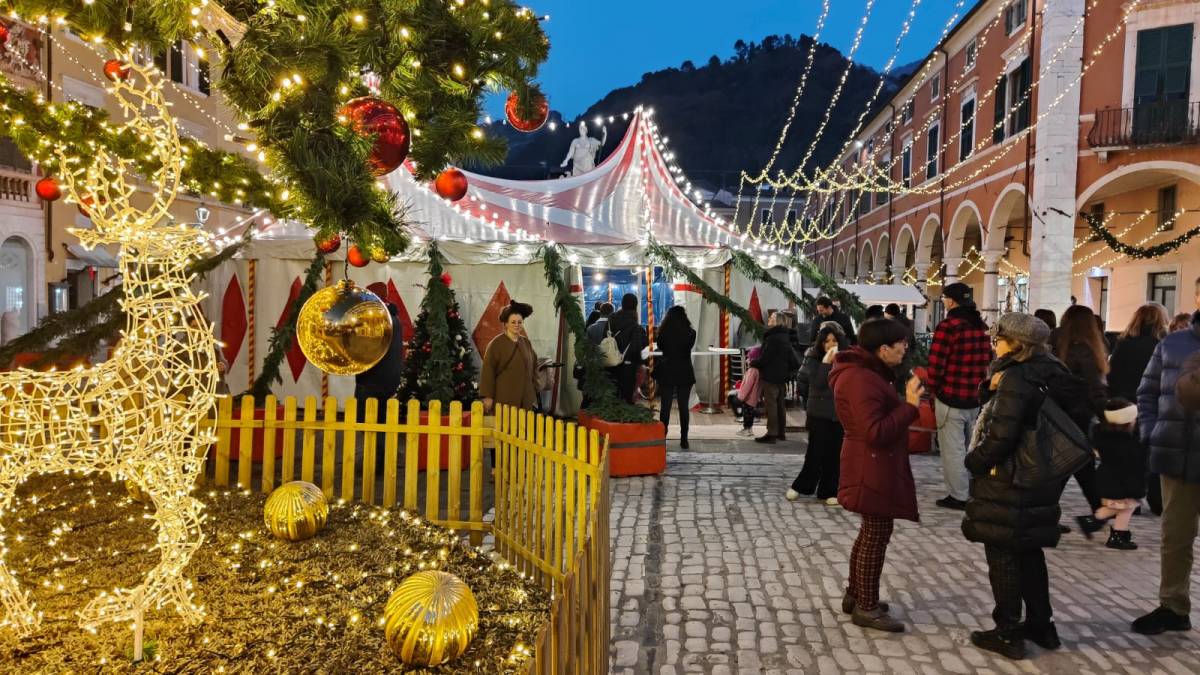 Il villaggio in piazza Alberica ospita anche le casette con lo speciale mercatino di Natale con i prodotti di artisti, artigiani, operatori dell'ingegno, associazioni, scuole e le Pro Loco di Carrara, Codena, Fantiscritti e Bergiola in vendita tutti i giorni dalle 15 alle 19.