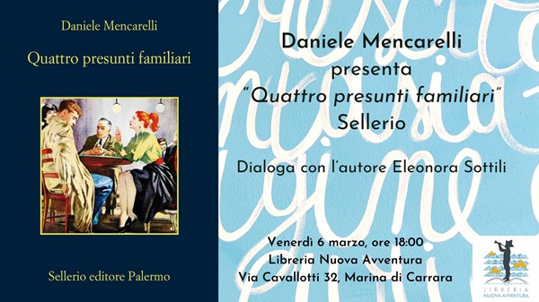 Ospite d’onore alla libreria Nuova Avventura di Marina di Carrara venerdì 6 marzo alle 18: il Premio Strega Daniele Mencarelli presenterà il suo ultimo romanzo, Quattro presunti familiari.Sarà un momento speciale di incontro e dialogo con uno degli autori più apprezzati del panorama letterario italiano, reduce dalla vittoria del Premio Strega Giovani 2020, per Tutto chiede salvezza e dalla nomina nel 2022 per il Premio letterario dell'Unione Europea. In questo suo primo romanzo per la casa editrice Sellerio ci porta in un enigma che svela un mondo nero, intriso di desiderio e nostalgia del potere, di forza e violenza, in cui si aggirano personaggi macchiati dalla colpa, intossicati da errori e sogni; eppure in loro si annida la luce di un riscatto. Nei boschi attorno al paese di Norma, in provincia di Latina, viene rinvenuto uno scheletro con qualche brandello di pelle. A occuparsi del caso sono i carabinieri di Latina, nella persona del maresciallo Damasi e dell’appuntato Circosta, un giovane senza tante pretese né qualità, ma con una fame insaziabile di esperienza.Bisogna dare un nome a quelle ossa, per questo vengono convocate quattro persone, quattro presunti familiari: tre famiglie che hanno denunciato, in epoca compatibile con lo stato dei resti, la scomparsa di un loro caro. Chi avrà lo stesso DNA recuperato dallo scheletro vincerà una lotteria lunga anni di speranze e ricerche vane.
