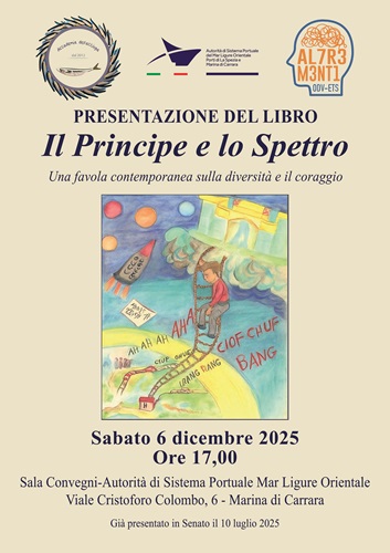 L’Accademia dell’Acciuga, libera associazione “CulturalGaudente”, oltre che occuparsi della cultura enogastronomica ha nel suo statuto la finalità di promuovere attività culturali. Per questo sabato 6 dicembre prossimo, alle ore 17.00, presso la Sala Convegni dell’Autorità di Sistema Portuale, in viale Cristoforo Colombo, 6 Marina di Carrara, presenteremo il libro: "Il principe e lo spettro" di Terry Nesti. Il libro è una favola contemporanea ambientata nel mondo particolare della diversità, di chi la vive in prima persona con le sue particolarità e con le sfide per affrontarla nel migliore dei modi e con l’attenzione dovuta. Un racconto di un babbo che si immedesima nelle sensazioni di vita del figlio autistico che vive in un suo contesto ma che può partecipare e fornire il suo contributo alla società. La letteratura utilizzata come metodo di sensibilizzazione verso l’opinione pubblica su un delicato aspetto sociale che coinvolge in primis la famiglia, le associazioni del settore ma anche la cittadinanza. La presentazione è un’occasione per argomentare, confrontarsi e discutere per individuare sinergie tali da aiutare chi ha questa fragilità ed i familiari per rendere migliore la vita. In questa presentazione altre all’autore saranno con noi rappresentanti di associazioni, di imprenditori, di insegnanti, del mondo dello sport che ci faranno conoscere le loro esperienze, esperienze che sicuramente faranno riflettere e potranno essere esempio per tutti.