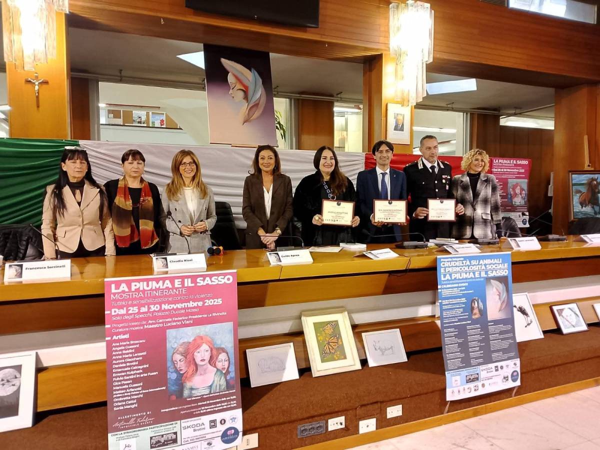 ll tono è diventato intimo e diretto. Non solo parole istituzionali: una chiamata all’empatia, al coraggio di non voltarsi dall’altra parte. Il suo appello ai ragazzi — invitandoli a farsi voce di chi non ha voce — è stato recepito come un impegno personale: non più solo conoscenza, ma scelta. Attorno alla conferenza, le opere degli artisti associati: Gica Pasan, Emwan Kulpherk, Aurora Giacchero, Fusan (Fulvio Santini), Daniela Brotini, Ana Maria Broscaru. La loro arte non decorava: parlava. La musica della cantautrice Simona Galli, con la sua grazia e la sua intensità, ha aggiunto un altro livello emotivo alla giornata.A sostenere l’iniziativa, con spirito autentico, il main sponsor Škoda Brotini e i partner: Confimpresa Massa-Carrara, Hair Color di Carlotta Pasqualini, Panificio La Spiga di Antonelli, Impossible Events di Antonelli Federico. Una rete viva, concreta, che ha creduto nel progetto e nei suoi valori. Il percorso della mostra “La Piuma e il Sasso” proseguirà dal 25 al 30 novembre 2025, insieme alle straordinarie ginnaste del CGRS guidate dalle professoresse Tiziana Venè e Francesca Biagini.E mentre le sale tornano piano piano al silenzio, qualcosa rimane. Una consapevolezza nuova.