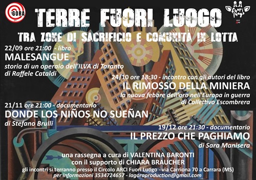 Rassegna sull'estrattivismo dell'associazione La Gora al circolo Arci Fuori Luogo di Carrara. il 19 dicembre c'è il documentario di GreenPeace
