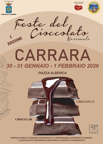 Carrara ospita la prima grande edizione della Festa del Cioccolato Artigianale! Un evento reso possibile grazie al patrocinio del Comune e alla preziosa collaborazione della Proloco, che contribuirà attivamente ad animare e arricchire l’iniziativa. La manifestazione si terràdal 30 Gennaio al 1 Febbraio 2026 in Piazza Alberica. L’evento sarà un viaggio golosotra le eccellenze italiane del cioccolato artigianale: un appuntamento imperdibile per gli amanti del cioccolato, dove i Maestri Cioccolatieri provenienti da diverse regioni italiane faranno scoprire i segreti di un prodotto unico, frutto di antiche tradizioni tramandate di generazione in generazione. Alla Festa del Cioccolato Artigianale si potranno assaporare creazioni in grado di esaltare le caratteristiche organolettiche del vero cioccolato. Questo cioccolato, diverso da quello commerciale, perché privo di additivi e conservanti, è un’esperienza sensoriale che conquista al primo assaggio: si scioglie letteralmente in bocca, regalando un’esplosione di gusto senza eguali.