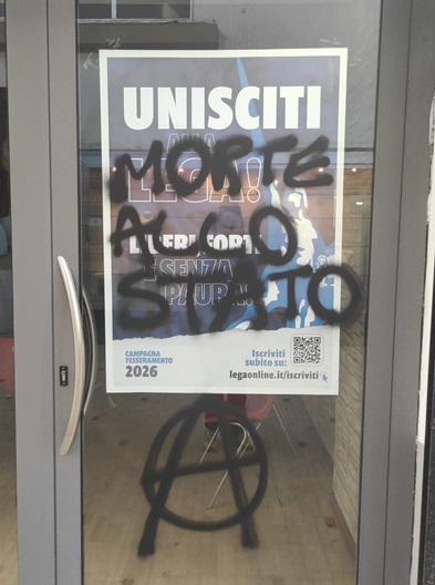 "Grave quanto accaduto a Massa, dove la sede della Lega è stata imbrattata da anarchici con scritte violente, simboli estremisti e messaggi deliranti contro lo Stato e le istituzioni. Un atto politico intimidatorio che rivela un clima di odio ideologico sempre più preoccupante. Chi scrive 'morte allo Stato' e inneggia alla violenza dimostra di non avere alcun rispetto per la democrazia e per le regole della convivenza civile.Questi delinquenti pensano di zittire le idee altrui con le bombolette spray, ma si sbagliano di grosso. La Lega non si farà intimidire e continuerà, con ancora più determinazione, a difendere sicurezza, legalità e libertà. Piena solidarietà ai nostri militanti e ai volontari di Massa, che ogni giorno portano avanti il loro impegno sul territorio. Confido nel lavoro delle forze dell'ordine affinché i responsabili vengano identificati e puniti." Lo dichiara Susanna Ceccardi (Lega)
