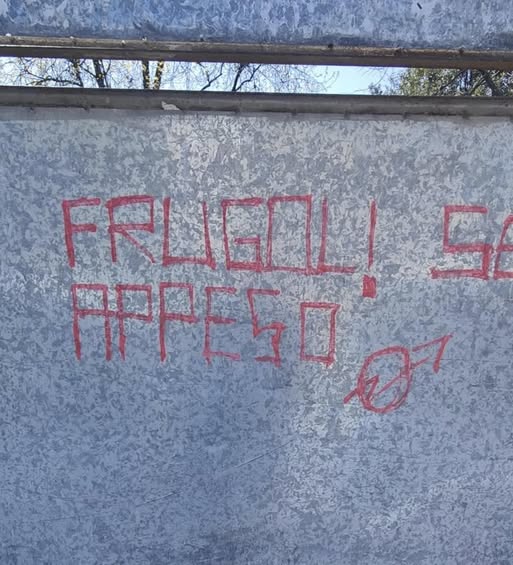 E' firmata, inequivocabilmente, la scritta contenente una chiara minaccia nei confronti del consigliere comunale della Lega di Massa, Filippo Frugoli, apparsa su un muro, a Massa, nelle prime ore del mattino di mercoledì 18 marzo e la firma è una falce e un martello con sopra una stella, simbolo del comunismo più esasperato della dittatura sovietica, finita nel 1989. Il messaggio è ugualmente inequivocabile: "Frugoli appeso Servi" corredato da un ulteriore simboletto di non chiara interpretazione che assomiglia al simbolo del genere maschile, ma con due frecce che lo attraversano, probabilmente il logo degli autori o solo un maldestro uso della bomboletta spray o delle informazioni relative ai simboli. Oltre allo sfregio del muro, resta, comunque la minaccia inquietante, resa più grave proprio dalla firma, messa a dimostrare l'arrogante certezza di essere ovviamente giustificati, secondo il trito e ritrito assioma autoprodotto, di essere quelli dalla parte giusta della storia e quindi di avere diritto a minacciare e anche ad uccidere quelli che non la pensano come loro, per non parlare del diritto di imbrattare i muri per intimidire un avversario politico. Il segretario provinciale della Lega Massa Carrara Andrea Tosi ha definito 'gravissima' la minaccia sulla sua pagina facebook ed ha auspicato una condanna generale del gesto: "Mi giunge questa foto da Massa. Questa non è una scritta. Questa è una minaccia gravissima, esplicita e inquietante nei confronti di Filippo Frugoli, capogruppo della Lega. Un fatto di una gravità assoluta, che supera ogni limite e che nulla ha a che vedere con il confronto politico. A Filippo va la mia totale e incondizionata solidarietà. Qui non si sta parlando di intimidazione. Qui si è andati ben oltre, con un messaggio che richiama direttamente la violenza. Su episodi del genere non può esserci alcuna sottovalutazione. Serve una condanna ferma da parte di tutti. Noi non arretriamo di un millimetro".