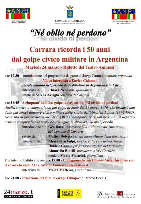 ‘Né oblio né perdono’ Carrara ricorda i 50 anni dal golpe civico militare in Argentina
