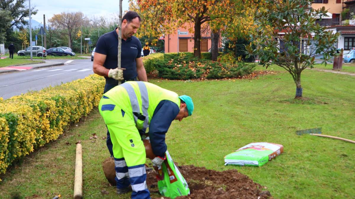 Una città più verde, una città più bella, una città più a misura d'uomo. Stamani in largo Alpini Alpi Apuane, a Marina di Carrara, si è tenuta la cerimonia per la messa a dimora di 35 nuovi alberi donati dal Consorzio di Bonifica Toscana Nord al Comune di Carrara. Si tratta di esemplari di cercis siliquastrum, meglio conosciuti come alberi di Giuda, di cui 18 sono stati piantati in largo Alpini Alpi Apuane, mentre i restanti 17 nel vicino giardino comunale tra via Lunense e via Muttini. Queste piante rappresentano la prima tranche di un progetto più ampio che coinvolge i due enti sulla base di un protocollo d'intesa sottoscritto nei mesi scorsi e che prevederà nelle prossime settimane la piantumazione di altre 48 essenze all'interno dei giardini degli asili nido comunali. Con il progetto 'Un albero per ogni nuovo bimbo o bimba' il Consorzio di Bonifica si fa carico di distribuire nuove piante mentre il Comune si assume, grazie anche al fondamentale supporto di Nausicaa, la responsabilità della piantumazione e delle operazioni necessarie per garantire il regolare sviluppo e il mantenimento degli alberi.