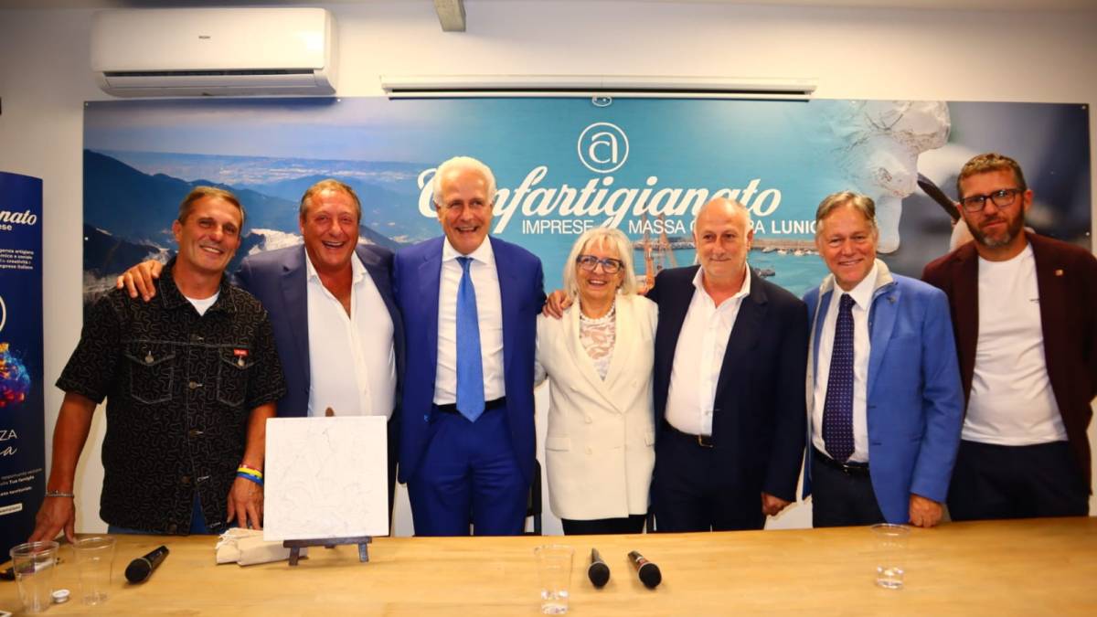 Una serata intensa, partecipata e ricca di contenuti quella organizzata da Confartigianato Imprese Massa Carrara Lunigiana nella sede provinciale a Carrara, in occasione dell'incontro pubblico con Eugenio Giani, presidente della Regione Toscana e candidato alla riconferma. L'appuntamento, tenutosi sabato 27 settembre, ha visto la presenza di Gianni Lorenzetti, candidato al consiglio regionale, e di Nicola Del Vecchio, segretario provinciale della CGIL. A coordinare il dibattito è stato Sergio Chericoni, presidente di Confartigianato. L'incontro, preceduto da un buffet di benvenuto, ha rappresentato un'occasione preziosa per discutere delle prospettive di sviluppo della provincia apuana e delle sfide che attendono il territorio nei prossimi anni. Al centro del confronto, temi strategici come il potenziamento del porto di Marina di Carrara, la lotta all'erosione costiera, il rilancio del turismo, il sostegno alle imprese artigiane e industriali, e il rafforzamento della filiera del marmo e del manifatturiero locale. Il presidente Giani ha ribadito con forza il proprio impegno per il rilancio del porto di Marina di Carrara, definendolo «una infrastruttura strategica per tutta la Toscana costiera». Ha inoltre espresso la volontà di riportare la gestione del porto sotto una regia istituzionale toscana, garantendo nel frattempo il massimo impegno affinché almeno il segretario generale dell'attuale Autorità del Mar Ligure Orientale torni a essere espressione del territorio, così da assicurare una voce locale nelle scelte che contano.«Il porto è il cuore pulsante della nostra economia – ha sottolineato Giani – e deve tornare a parlare toscano, con una governance che sappia interpretare le esigenze del territorio e valorizzarne le potenzialità.» Accanto al tema portuale, si è parlato della Zona Logistica Semplificata, che proprio grazie alla presenza del porto può rappresentare un volano per le imprese locali, semplificando procedure e incentivando investimenti. Ampio spazio è stato dedicato anche a tanti altri temi, cruciali per il futuro del territorio in una visione strategica di ampio respiro all'interno della Toscana. A conclusione della serata, il presidente Giani ha ricevuto in dono una targa in marmo raffigurante il giglio fiorentino, realizzata dal maestro artigiano Michele Monfroni: un gesto simbolico che ha voluto celebrare il legame tra tradizione, artigianato e istituzioni.