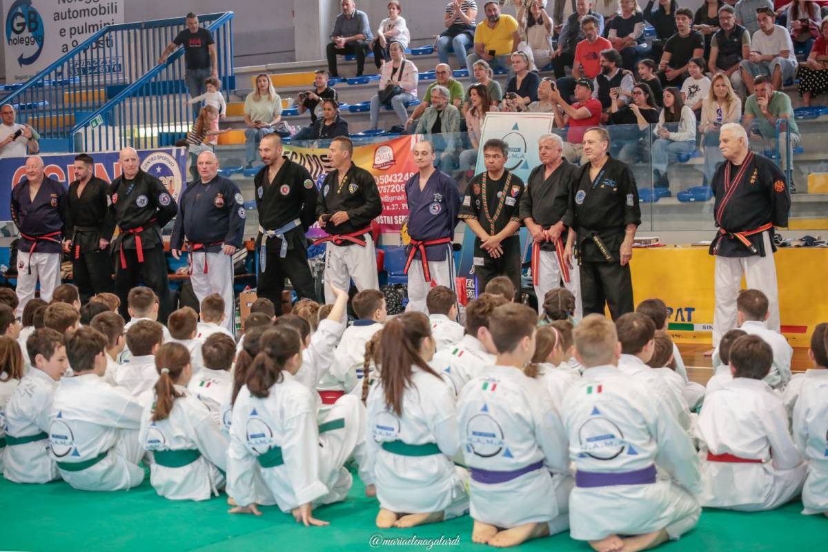Grande festa al palazzetto di Avenza per i 45 anni di pratica marziale del maestro Guido Nicoli. Lezioni per tutti e ospiti internazionali