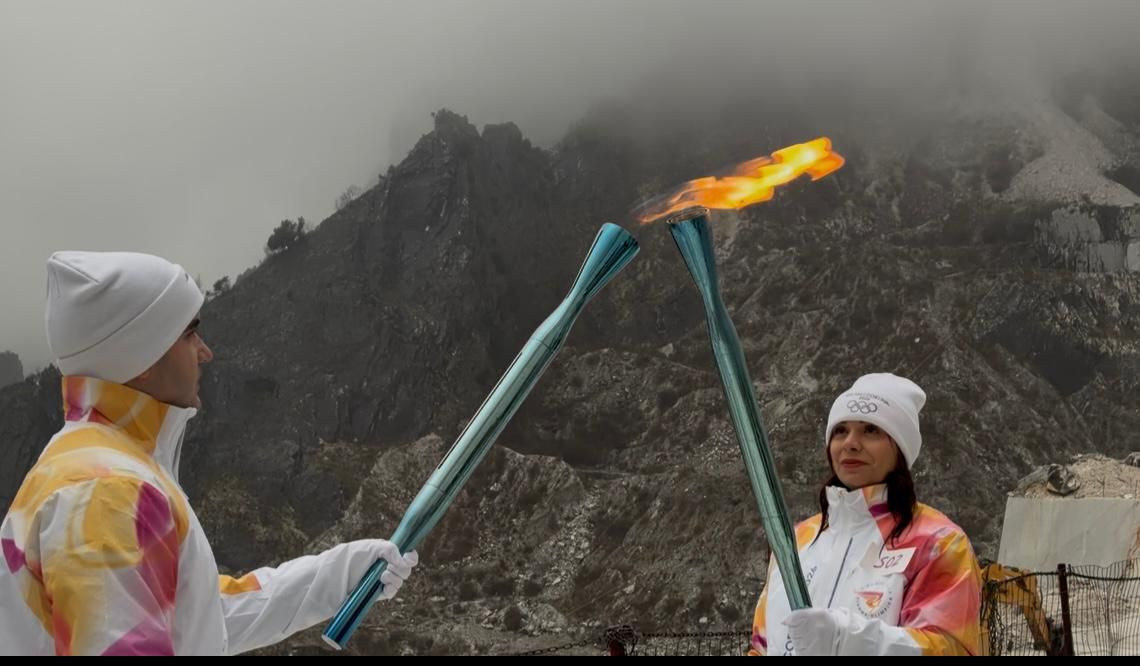 Sotto nuvole minacciose e scrosci di pioggia, che inevitabilmente hanno molto penalizzato il panorama delle cave di Carrara, la torcia olimpica di Milano Cortina ha fatto il suo passaggio sul suolo del comune di Carrara, che, evidentemente non ha ritenuto particolarmente rilevante la notizia, non fornendo alcuna anticipazone al riguardo. Il passaggio, scelto dall'organizzazione di Milano Cortina come uno degli "special moments" del percorso, cioè i passaggi nelle località più suggestive che vengono ripresi da un'equipe apposita, la spider, per essere poi montati nel videoracconto del viaggio della fiamma olimpica è avvenuto verso le 9 di venerdì 9 gennaio all'interno della cava 2 Amministrazione, del gruppo Cave Michelangelo gestite da Franco Barattini. I due tedofori protagonisti del passaggio sono stati Gianmaria Cristina e Nunzia D'ambrosio, entrambi originari della provincia di La Spezia e senza un passato da sportivi professionisti. Per fare il tedoforo, infatti, era possibile candidarsi entro il giugno del 2025. L'organizzazione di Milano Cortina ha poi provveduto ad esaminare i vari profili dei candidati ed ha scelto quelli che erano più in linea con i valori olimpici, privilegiando anche l'appartenenza territoriale. dopo lo spegnimento della torcia alle cave è stata accesa la fiaccola a Massa per un percorso ampio in tutta la città. Dopodichè la fiamma è partita per la tappa di La Spezia e, di seguito, per arrivare a Genova.
