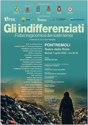 Dopo il grande successo riscosso delle rappresentazioni di Massa e Carrara, lo spettacolo “Gli Indifferenziati – Fiaba tragicomica dei nostri tempi” arriva a Pontremoli dove andrà in scena al Teatro della Rosa martedì 7 aprile.Lo spettacolo, interpretato dai giovani attori del Liceo Classico Pellegrino Rossi, scritto da Gennaro Di Leo e Carlo Pernigotti, è ”, un’iniziativa educativa e culturale che affronta il tema della corretta gestione dei rifiuti e della raccolta differenziata.