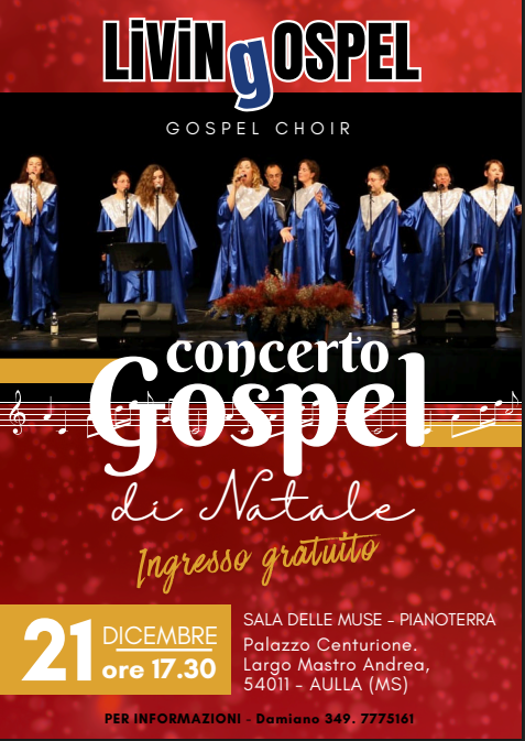 Un pomeriggio di musica gospel per celebrare l'arrivo del Natale: domenica 21 dicembre alle ore 17:30 la Sala delle Muse di Aulla ospiterà il concerto natalizio ad ingresso libero e gratuito dei Livingospel Gospel Choir, una formazione che da quasi trent'anni porta in Italia la tradizione e l'energia della musica gospel americana. E non è la prima volta che il gruppo calcherà questo palco: la formazione, che da quasi trent'anni percorre l'Italia portando l'energia contagiosa della musica gospel, ha scelto proprio Aulla come una delle tappe privilegiate del suo intenso calendario di esibizioni. I Livingospel nascono nel 1996 dall'incontro artistico tra Franco Muggeo, direttore musicale e compositore, e Patrizia Borlotti, vocalist solista. Il gruppo si distingue per un repertorio che va oltre la semplice rivisitazione dei classici gospel: propone infatti numerosi brani inediti che fondono lo spirito tradizionale gospel con sonorità contemporanee come Funky, R&B, Jazz e Hip Hop. Questa ricchezza deriva dai diversi background musicali dei componenti del gruppo, che creano un sound unico e coinvolgente, capace di toccare il pubblico con intensità ed emozione.Nella loro lunga carriera hanno calcato alcuni dei palchi più importanti d'Italia: un curriculum che testimonia non solo la qualità artistica della formazione ma anche la capacità di adattarsi a contesti diversi, dai grandi palazzetti dello sport alle piazze cittadine, dalle chiese alle sale comunali.Quello che ascolteremo sabato pomeriggio sarà un viaggio musicale attraverso la tradizione gospel, con quindici brani accuratamente selezionati.Patrizia Borlotti è passata dall'Orchestra del Casinò di Sanremo all'Orchestra della Rai, con il gruppo vocale Singingsound di Laura Fedele, figura nota nel circuito blues milanese. Nel 1996 partecipa come corista al Festival di Sanremo. Parallelamente all'attività artistica, ha approfondito lo studio del canto e oggi insegna con il metodo Estill Voice Training System. È proprio a Milano che incontra Franco Muggeo, che diventerà suo marito e compagno di avventura musicale nei Livingospel. Pianista, la carriera di Muggeo spazia dal mondo discografico a quello pubblicitario, dal cinema alla televisione. Ha composto musiche per spot di marchi come Colgate, DirectLine, Standa, Fiat e Telefunken. Ha firmato arrangiamenti e composizioni per i SugarFree della Warner Music. Ma il lavoro di cui va più orgoglioso è probabilmente la colonna sonora per il video di presentazione dell'EXPO di Milano.C'è però qualcosa che distingue i Livingospel da un semplice gruppo musicale. Ogni loro esibizione porta con sé un messaggio preciso: il Vangelo e i suoi valori. "La nostra ragione d'essere", spiegano gli artisti, "è condividere attraverso la musica la scoperta di un Dio vivo e personale, insieme all'esperienza della potenza del Vangelo nella nostra vita".Per questo i loro concerti non sono mai solo intrattenimento ma diventano momenti di condivisione spirituale. Una caratteristica che il pubblico percepisce e apprezza, come dimostrano le numerose repliche in diverse località e la fedeltà del pubblico che li segue ormai da anni.