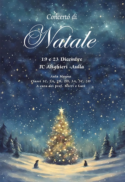 Venerdì 19 e martedì 23 si sono tenuti i tradizionali concerti di Natale della scuola media dell'Istituto comprensivo Dante Alighieri di Aulla. I due spettacoli hanno visto protagonisti gli alunni delle classi prime seconde e terze seguiti dai professori Laura Mirri e Thomas Luti docenti di musica della scuola. I ragazzi si sono esibiti in brani di vario genere dal folk al Jazz, dal pop al rock nonché brani tipicamente natalizi cimentandosi con vari strumenti (flauti, chitarre, metallofoni, tastiere, percussioni e anche un violino). Non tutti i brani sono stati proposti nella versione strumentale, ma alcuni sono stati eseguiti con la body percussion e il canto. Gli alunni all'interno della scuola hanno infatti la possibilità di scegliere tra vari strumenti creando così una piccola orchestra e la preparazione musicale offerta dalla scuola prevede più ambiti. L'evento aperto ai genitori degli alunni ha avuto una grande partecipazione e sono intervenuti anche il sindaco della cittã di Aulla Roberto Valettini e l' assessore alla cultura Maria Grazia Tortoriello. Le numerose iniziative musicali della scuola sono da sempre approvate ed appoggiate dalla dirigente scolastica professoressa Silvia Bennati.