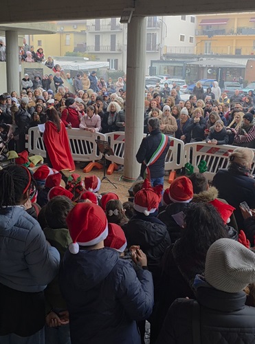 Cappellini rossi e tutti in fila sulle gradinate di Palazzo Civico. Questa mattina bambine e bambini della Scuola Primaria si sono esibiti in una sequenza di canti natalizi preceduti da messaggi di pace e speranza."Queste canzoni sono un invito a riflettere sull'importanza di amore, unione, connessione con gli altri. E se ancora vi sembra che manchi qualcosa, basta aggiungere l'essenza del Natale", ha esordito uno degli alunni in apertura dello spettacolo.Un folto pubblico ha riempito l'atrio del Comune per assistere a uno dei momenti più sentiti dell'anno. "Con l'avvicinarsi del Natale – ha dichiarato il sindaco Roberto Valettini - quei sentimenti di serenità, rispetto e fratellanza si sentono di più. Vedere tutti questi bambini affettuosi l'uno all'altro non può che farci piacere. Il loro messaggio rappresenta l'insieme dei valori cui ispirare la nostra vita e per questo li ringrazio, come anche gli insegnanti e le loro famiglie che sono qui numerose e danno il senso della comunità: cosa di cui oggi abbiamo davvero molto bisogno nel mondo".I bambini sono stati accompagnati da scuola al Comune dalle insegnanti e dalla Polizia Locale. "Il lavoro che abbiamo svolto è stato impegnativo - ha spiegato una delle insegnanti - Lo spettacolo di oggi è parte di un progetto che ci ha portato a condividere un lavoro giorno dopo giorno sui valori della fratellanza, della pace, dell'amicizia e della condivisione. I bambini hanno riflettuto su questi valori attraverso una narrazione e riproducendoli su alcune decorazioni esposte nella scuola". Ha poi concluso l'insegnante "Molto spesso noi adulti dovremmo imparare proprio dai bambini".