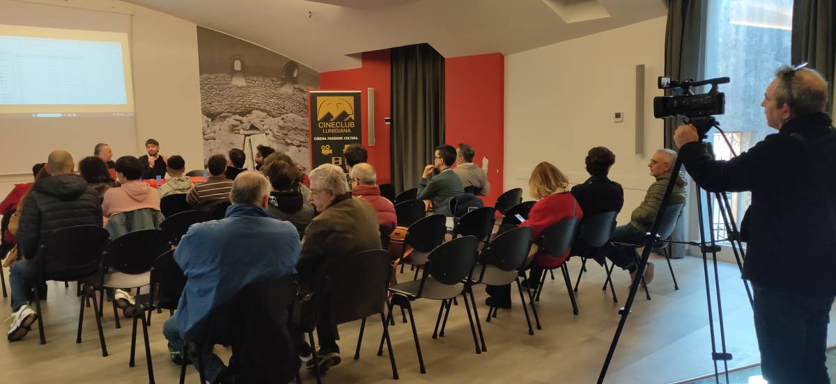 Il Cineclub Lunigiana ha inaugurato ufficialmente venerdì 8 novembre la propria sede operativa, la “Stanza 237”, all’interno dello storico Palazzo Centurione, segnando un momento significativo per la vita culturale della Lunigiana. La giornata, articolata in più appuntamenti e ospitata presso l’Auditorium San Caprasio di Aulla, ha rappresentato non solo un incontro per appassionati e operatori del settore, ma anche un passo importante nella crescita del Cineclub, oggi punto di riferimento per la divulgazione e la valorizzazione del cinema sul territorio. L’evento si è aperto con la presentazione del nuovo corso di cinema, in partenza il 15 novembre, che verrà ospitato nella nuova sede del Cineclub. Il filmmaker Alessio Ciancianaini, fondatore di Overlook Filmmaking Labs, ha illustrato filosofia e struttura del percorso formativo, sottolineando l’importanza di un’offerta culturale innovativia per la Lunigiana. A seguire, all’interno del ciclo “Salotto Cinematografico”, si è tenuta la conferenza “Il suono del cinema”, un approfondimento dedicato alla dimensione sonora nella narrazione filmica, condotto da Ciancianaini.Il Salotto Cinematografico è realizzato grazie al contributo della Fondazione Carispezia nell’ambito del Bando n. 3/2025 “Pillole di Cultura”. Il momento centrale della giornata è stato il taglio del nastro della nuova sede del Cineclub Lunigiana, effettuato dal presidente dell’Associazione, Fabio Ravioli, davanti ai rappresentanti delle istituzioni, agli associati e alle altre persone presenti. La sede, battezzata “Stanza 237” dopo un breve sondaggio tra gli associati omaggiando una delle stanze più iconiche della storia del cinema (la camera dell’Overlook Hotel del film “Shining” di Stanley Kubrick), diventerà uno spazio intimo e dal forte valore simbolico, che ospiterà attività associative, laboratori e momenti di dialogo e confronto. Alla cerimonia erano presenti rappresentanti dell’amministrazione comunale, che hanno portato i saluti istituzionali, confermando l’attenzione del Comune per le attività culturali promosse dall’associazione.