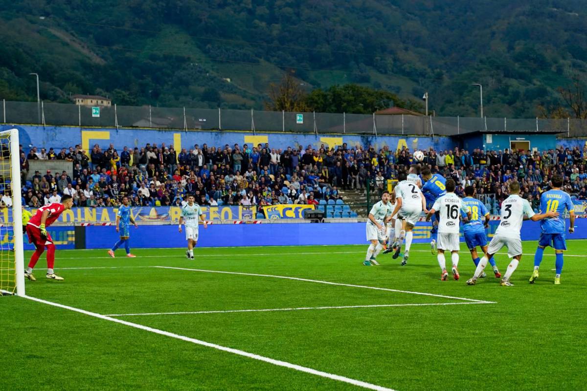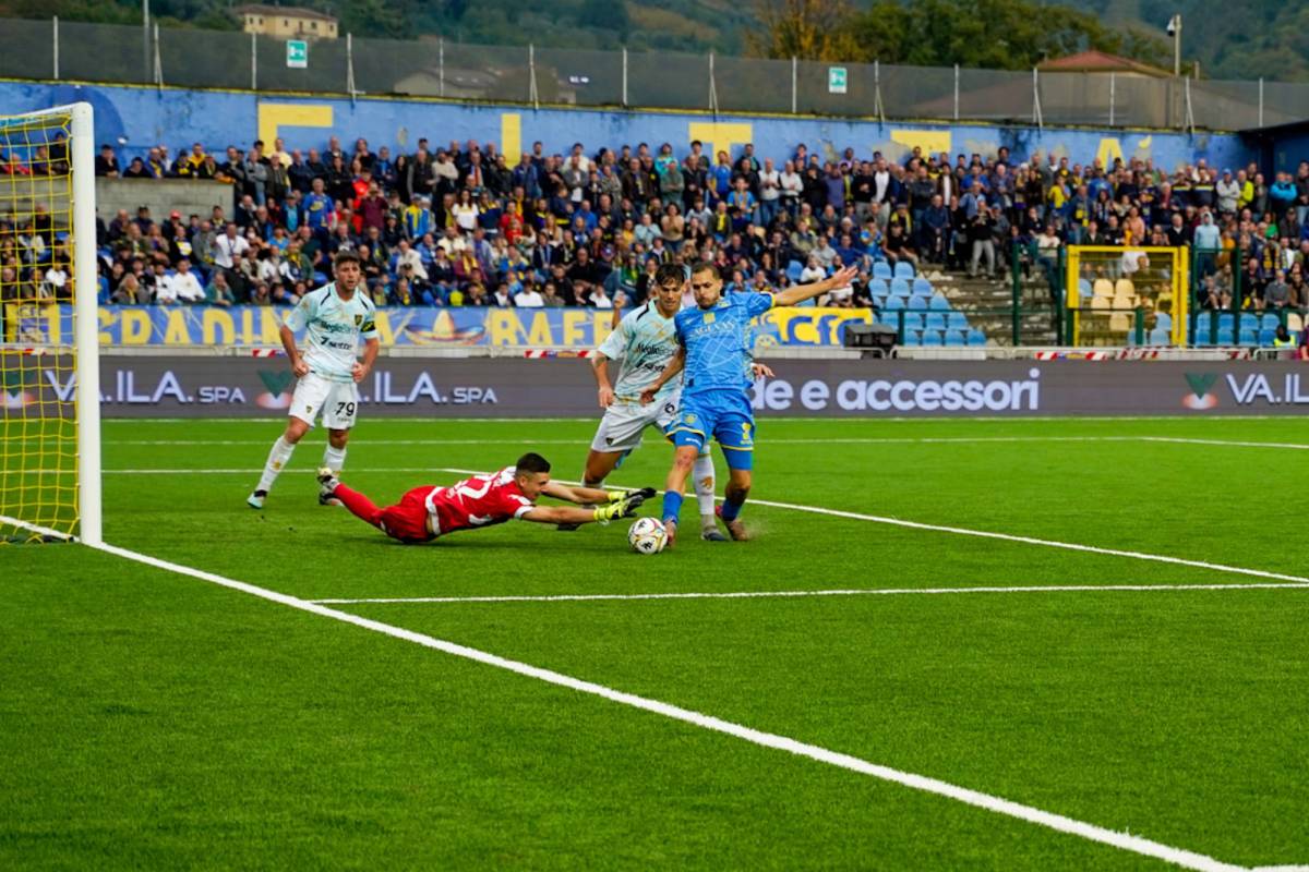 Allo stadio dei Marmi, la Carrarese perde per 2-0 contro il Frosinone, seconda sconfitta consecutiva per gli apuani, che scivolano al nono posto. Gara molto nervosa, con tante interruzioni e poche emozioni. Protagonista del match tra Carrarese e Frosinone è stato il direttore di gara Livio Marinelli: tre calci di rigori assegnati e due annullati dal var. Nel finale del primo tempo, su calcio di rigore Calo' porta in vantaggio il Frosinone . Nel secondo tempo, per mezz'ora la Carrarese gioca in superiorità numerica, dopo l'espulsione di Oyono, ma poco prima del novantesimo, un contropiede chirurgico di Ghedjemis chiude i giochi. Contro il Frosinone non c'è Hasa: il talento scuola Napoli ha accusato un problema fisico. Calabro schiera in porta Bleve, con Ruggeri-Imperiale-Illanes a completare la difesa. Sugli esterni Cicconi-Zanon e al centro la coppia Zuelli-Schiavi. In attacco Arena e Finotto agiscono dietro Abiuso.