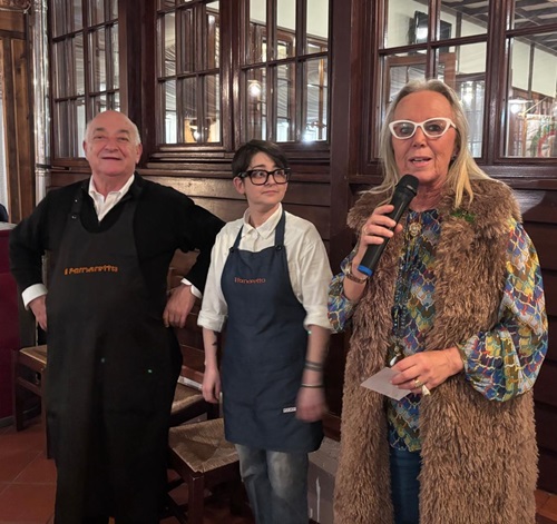Gran successo dell’incontro fra i sapori della tradizione apuana e i vini di eccellenza della Sicilia organizzato dalla Delegazione Apuana dell’Accademia Italiana della Cucina e svoltosi giovedì scorso al ristorante “Il Fornaretto”, a Massa. Introducendo la serata, la Delegata Beatrice Vannini ha sottolineato «che questo incontro è in perfetta sintonia con gli obiettivi dell’Accademia di promuovere e valorizzare le eccellenze delle tradizioni regionali. In questo caso: i piatti tipici apuani e i vini di alta qualità della Sicilia. Stasera potremo apprezzare i vini biologici provenienti da vitigni autoctoni siciliani proposti dall’Azienda Assuli del nostro socio accademico Roberto Caruso, che ha sede a Mazara del Vallo». Il socio simposiarca e relatore Alberto Sacchetti ha illustrato i piatti tipici apuani proposti nel menu e gli abbinamenti con i vini, molto apprezzati dagli accademici e dagli ospiti. «Iniziamo con il benvenuto dello chef: baccalà mantecato, in frittella e marinato. Quest’ultimo, che nel passato veniva offerto nelle osterie per invogliare l’avventore ad acquistare e bere vino, si sposa con il Jalilà, un bianco Igt frizzante con straordinarie note agrumate nato da un blend di Grillo, Zibibbo, Insolia e Catarratto». Ai salumi della storica Bottega di Adò e al lardo di Colonnata, prodotto Igp, Sacchetti ha abbinato il Fiordispina Doc, un rosato ottenuto dal Perricone. Non potevano mancare i tordelli alla massese, conditi col ragù di carne. «Si tratta di un piatto nato nel medioevo per riutilizzare gli avanzi del giorno della festa. Nella versione massese non possono mai mancare due ingredienti: il timo e la bietola». In tavola è stato accompagnato dal Ruggiero Doc, un rosso Sirah di buona struttura. «L’agnello massese, macellato quando raggiunge un peso tra i dieci i 15 chili - ha proseguito Sacchetti - ha carne tenera, molto nutriente e con basso contenuto di grasso. Citata da Nicolò Machiavelli nell’opera “La vita di Castruccio Castracani”, ha guadagnato l’Igp del Centro Italia e un posto nel Pat (Prodotti agroalimentari tradizionali». L’arrosto con patate si è ben sposato con due rossi eccellenti: Lorlando, un Nero d’Avola, e il Furioso, un Perricone in purezza. Per finire i cenci di Carnevale e la torta di riso «che deriva dalla torta degli addobbi bolognese - ha concluso il relatore -, ha un sottile strato di riso e un alto strato di crema, aromatizzata con alchermes o con un mix di liquori diverso da famiglia a famiglia. Si abbina bene con il passito Doc, proveniente dal vitigno autoctono Grillo, che nel 2026 ha vinto il massimo riconoscimento dell’Associazione italiana sommelier». Paolo Agonigi, amministratore delegato dell’azienda Assuli, con l’ausilio di slide ha sapientemente illustrato le caratteristiche dell’azienda siciliana, che si sviluppa su 130 ettari di vigneti nel trapanese, e dei vini biologici di eccellenza che produce valorizzando vitigni autoctoni siciliani. Alla fine della conviviale la Delegata Vannini ha donato una vetrofania a Davide Mosti, titolare del Fornaretto, e a Chiara Mosti, che insieme a lui gestisce il ristorante.