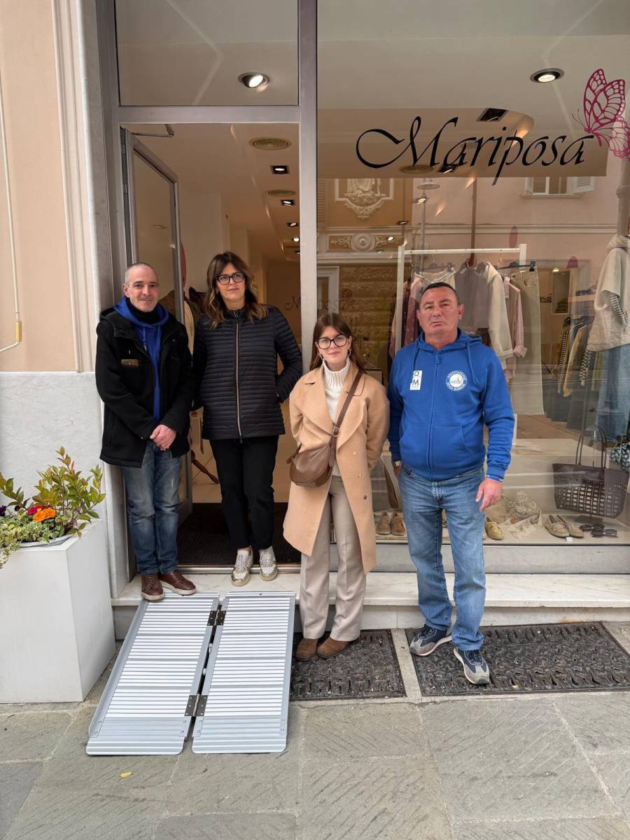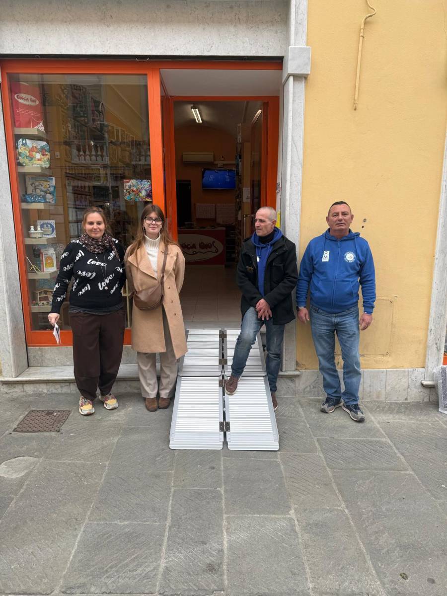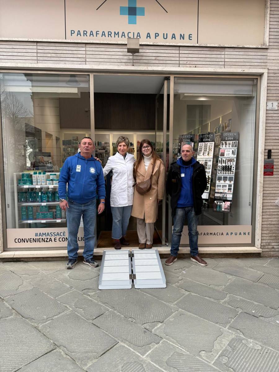 Diciassette pedane per l'accesso dei disabili consegnate da Luccasenzabarriere ODV ai negozi di Massa