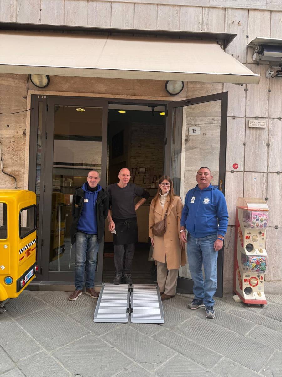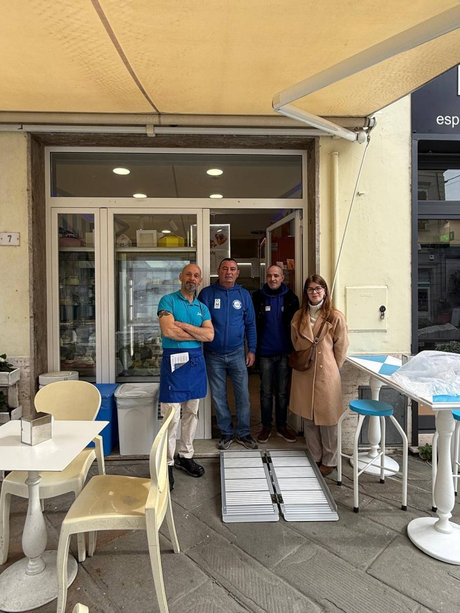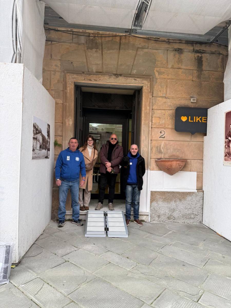 Diciassette pedane per l'accesso dei disabili consegnate da Luccasenzabarriere ODV ai negozi di Massa