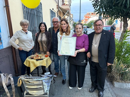 Presente alla cerimonia anche don Ezio Gigli, sacerdote della parrocchia della Sacra Famiglia di Piazza Gino Menconi, che ha portato il saluto e la vicinanza di tutta la comunità parrocchiale, esprimendo apprezzamento per il ruolo che il Bar Porto continua a svolgere come punto di incontro e dialogo all’interno del quartiere.