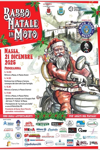 Si è svolto nella mattinata di oggi, presso la Sala Giunta del Comune di Massa, l’incontro di presentazione della IX edizione di “Babbo Natale in Moto”, manifestazione solidale e folkloristica patrocinata dall’Amministrazione comunale e ormai divenuta uno degli eventi natalizi più iconici della città.All’incontro hanno partecipato gli organizzatori del Moto Club Massa e l’Assessore al Bilancio Marco Mercanti, intervenuto in rappresentanza del Comune di Massa, a testimonianza del sostegno e della vicinanza dell’Amministrazione a un’iniziativa che unisce spirito natalizio, partecipazione cittadina e solidarietà.Questa bella manifestazione ogni anno richiama un imponente numero di motociclisti provenienti da tutta la provincia, tutti rigorosamente vestiti da Babbo Natale - ha dichiarato Giuseppe Aldovardi, Presidente del Motoclub di Massa - Un evento che ha saputo conquistare nel tempo il pubblico grazie alla sua “anima solidale”, capace di portare sorrisi, doni e magia natalizia ai bambini che ne hanno più bisogno.Il momento clou dell’iniziativa si svolgerà domenica 21 dicembre, quando a partire dalle ore 14.00 i Babbo Natale motociclisti si ritroveranno in Piazza Aranci per dare il via al tradizionale tour nelle strade delle città di Massa e Carrara, durante il quale verranno consegnati regali e dolci natalizi ai bambini ospiti delle Case Famiglia”-Il rientro in città è previsto per le ore 17.00, accompagnato dalle suggestive note natalizie del gruppo fiati del Liceo Musicale “Palma”, diretto dal Prof. Figaia, che si esibirà in Piazza Palma, contribuendo ad animare il centro cittadino addobbato a festa.Tra le novità più attese di questa edizione, l’istituzione del premio per la “Moto e Babbo Natale più belli”, più coreografici e più luminosi. I primi tre motociclisti classificati saranno premiati da una giuria presieduta dal giornalista René Pierotti, affiancato dall’artista massese Maurizio Fruzzetti, da Luca D’Agostino (Visual Comunicazione) e da Stefano Giannelli, graphic designer e responsabile marketing di Fonteviva.