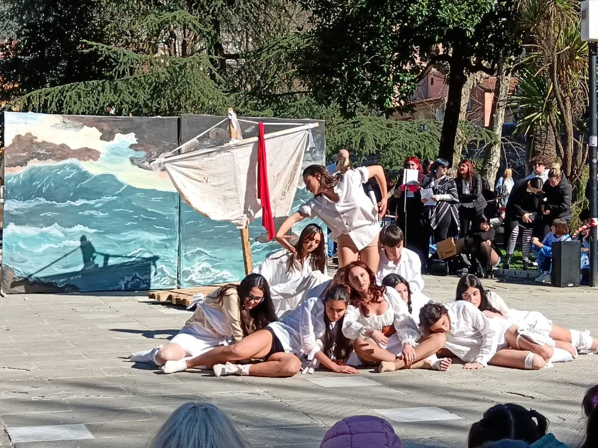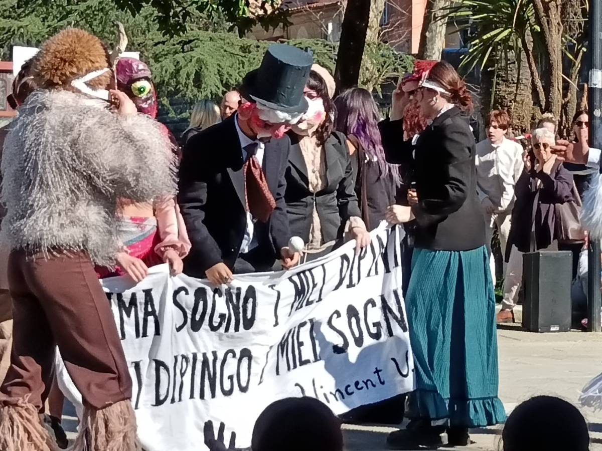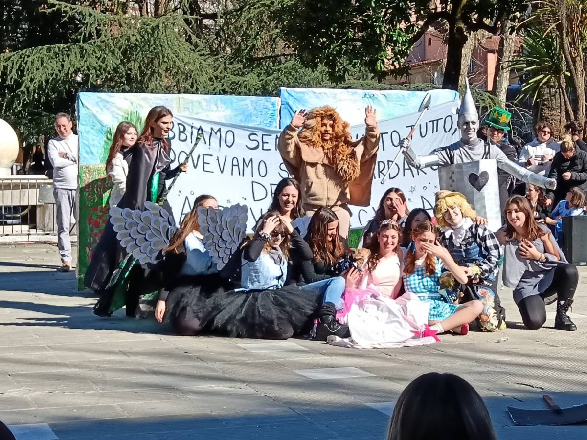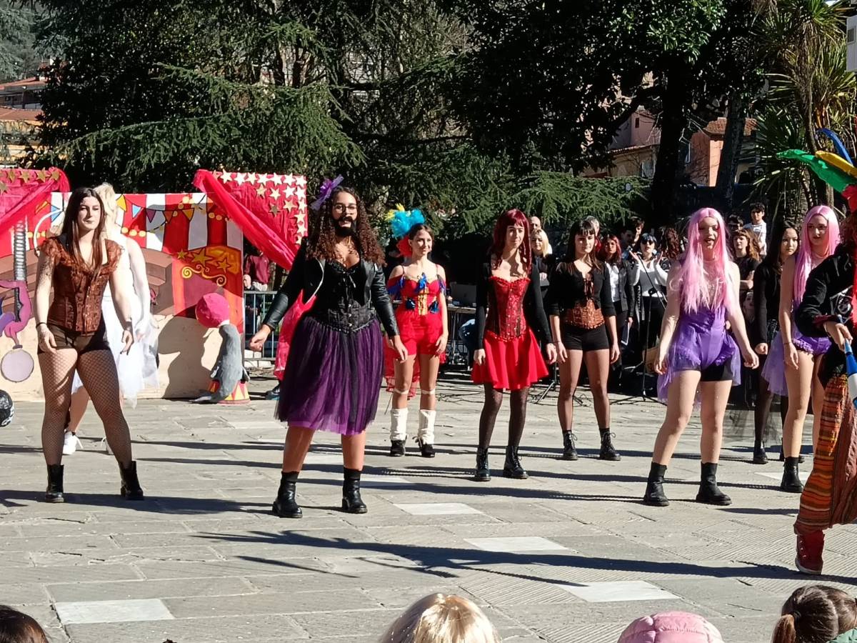 E' l'appuntamento fisso del martedì grasso, ormai diventato una tradizione nel sempre più spoglio e tribolato centro di Carrara, ed ogni anno riconferma tutta la sua positività. E' il Carnevale del liceo artistico Artemisia Gentileschi, la festa che esce dalle mura scolastiche e fa esplodere la frizzante creatività e la grande energia degli studenti dell'ultima scuola superiore rimasta nel centro storico della città. Protocollo immutato da anni: sfilata, accompagnata dalla banda, per le vie del centro, dei ragazzi nei costumi da loro allestiti per partecipare alla successiva sfida tra le varie classi con performance a tema che vengono giudicate da una giuria di ex insegnanti, esperti e giornalisti. Grande esibizione in piazza Gramsci di fronte a molte scolaresche delle scuole materne ed elementari del centro e di fronte a un pubblico che è sempre molto numeroso e riempie il catino della piazza. Anche quest'anno i ragazzi hanno dato prova non solo di grande bravura nelle discipline di indirizzo della loro scuola, ma anche di grande capacità di leggere il presente, l'arte, la letteratura e la cultura provando a dare una loro interpretazione. A fronte di scenografie veramente stratosferiche, molte riproducenti capolavori dell'arte italiana e internazionale - tutte realizzate nell'arco di una settimana, quella che viene concessa loro per prepare le loro performance - c'erano costumi ricercati e studiati nei dettagli, coreografie più o meno complesse, ma, soprattutto c'erano tante idee, spesso molto originali, da esprimere nei mini show creati da ogni classe. Un lavoro di ricerca che spazia in tutto il mondo della cultura, dal cinema alla musica, all'arte, e che viaggia nel tempo, spesso in quelle epoche di cui, abitualmente i ragazzi di questa generazione, non ha mai sentito parlare. Gli omaggi a Ritorno al Futuro, Il mago di Oz, Cabaret per esempio oppure le citazioni letterarie dei capolavori gotici come Frankstein, Dracula e Il fantasma dell'opera e anche La metamorfosi di Kafka, e ancora riferimenti prese dall'attualità come il furto di gioielli al Louvre o una rivisitazione della serie Hunger Games. Poi un classico dei Carnevali dell'artistico: entrare dentro ai capolavori della pittura, da Klimt a Caravaggio a Van Gogh facedoli vivere nelle movenze e negli sguardi freschi di questi preziosi, dotatisimi ragazzi. Il Carnevale dell'artistico è l'ennesima conferma di tutto quanto c'è di buono nei giovani - quando li si mette in condizione di poterlo tirar fuori -, di quanto c'è di buono nella scuola quando funziona per far crescere e non solo per quantificare, e di quanto c'è di buono nelle tradizioni che resistono al tempo, adeguandosi e rinnovandosi senza mai smettere di essere se stesse. Per la cronaca la vittoria nella sezione biennio è andata alla classe 2^ A che ha messo in scena una bellissima performance dedicata al mondo del circo, seguita dalle stupende ragazze della 2^ B, superlative in uno spaccato tratto da Cabaret, terza posizione per la 2^ C che si è ispirata a Hunger Games. La gara del triennio ha visto il susseguirsi di esibizioni imponenti per scenografie, cstumi e coreografie. La vittoria è andata all'Incubo visionario delle classi V B-C, seguite a parimerito dalla IV^ C e dalla IV^ D che hanno dato vita rispettivamente a una straordinaria celebrazione del capodanno cinese di cui oggi cade la ricorrenza e a una bellissima coreografia ispirata al quadro la zattera della Medusa. Al terzo posto si è classificata la IV^ B con una performance tra lo storico e l'ironico del passaggio dal gotico al Rinascimento, con tanto di "quella carogna del Vasari" a sancire il superamento dello stile da lui stesso codificato. Bellissimo l'omaggio a Napoli della performance dei prof, novelli Pulcinella che hanno poi coinvolto tutti, come accade ogni anno, in una danza collettiva.