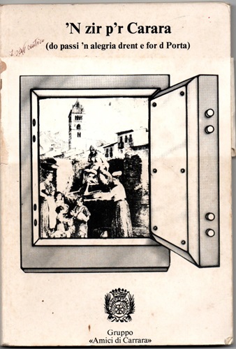 Venerdì 19 dicembre alle 17.30 presso Palazzo Binelli a Carrara si terrà la presentazione del volume di poesie e racconti in carrarino "N zir pr Carara". Si tratta della riedizione, per i tipi della SEA di Luca Galeazzi, di un testo scritto 30 anni fa da Mario Laquidara, tra i più conosciuti scrittori dialettali della nostra città. Il figlio Lanmarco, che ha curato il testo selezionando e aggiungendo i numerosi racconti e le poesie premiate nelle diverse annate del Premio Gino Bottiglioni, ha voluto ripubblicarlo per ricordare una figura molto conosciuta attraverso la sottile ironia dei suoi scritti e la forza delle tematiche affrontate nei racconti. Presenterà la serata Marzia Dati e interverrà Gualtiero Magnani, autore di una importante prefazione al testo. Lanmarco Laquidara ricorderà la figura del padre attraverso una testimonianza che fa parte del volume stesso come introduzione. Leggeranno alcune poesie e qualche racconto gli attori Paola Dell'Amico e Franco Cucurnia del gruppo teatrale "Mercanti di storie"