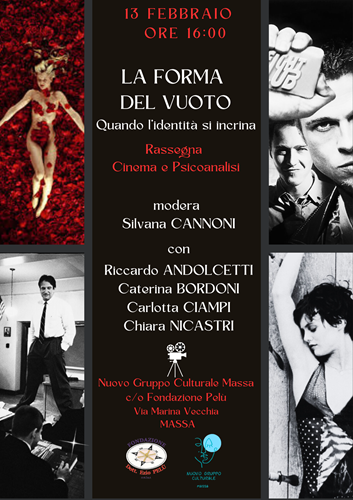 Proseguono gli incontri del Nuovo Gruppo Culturale Massa presso la Fondazione dott. Ezio Pelù Onlus, in Via Marina Vecchia, 165 a Massa. Venerdì 13 febbraio, alle ore 16, torna l'appuntamento dedicato al cinema. La tavola rotonda dal titolo: La Forma del vuoto. Quando l'identità si incrina, sarà presentata e moderata da Silvana Cannoni, coordinatrice del Circolo Letture ad Alta Voce di Massa, e vedrà la partecipazione di Riccardo Andolcetti e Chiara Nicastri, psicoterapeuti e membri della Scuola Lacaniana di Psicoanalisi, e delle psicologhe Caterina Bordigoni e Carlotta Ciampi. Cosa succede quando i ruoli sociali, le istituzioni, la famiglia, la scuola, il lavoro non riescono più a garantire senso, appartenenza, orientamento? Da Fight Club ad American Beauty, da La ragazza sul ponte a L'attimo fuggente, da La classe a Classe Z e Bianca, il vuoto prende forme differenti ma riconoscibili. Il Cinema, con la sua forza visiva e narrativa, dà forma a questo vuoto. Lo rende visibile nei corpi, nei silenzi, nelle ribellioni, nelle parole che mancano o esplodono. Mostra un'identità che si sgretola, ma anche la possibilità di una nuova consapevolezza.