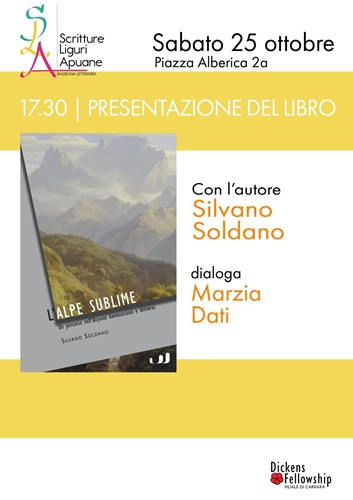 Sabato alle ore 17:30 presso la Dickens Fellowship in Piazza Alberica 2/a Marzia Dati dialogherà con Silvano Soldano, autore del volume L’Alpe Sublime. Un percorso nell’Alcyone dannunziano e dintorni (Industria & Letteratura 2024).“Un lavoro di grande rilevanza, quello di Soldano, che merita di essere conosciuto e che rientra nell’ambito di studi e ricerche che la Dickens Fellowship conduce da oltre un decennio sulle presenze anglo-americane a Carrara – dichiara Marzia Dati”. Gabriele D’Annunzio è il protagonista di L’Alpe Sublime ma, insieme a lui, incontriamo altri visitatori eccellenti che furono a Carrara, e altri che citano “la città del marmo”: Charles Dickens, P.B. Shelley e Walter Pater, il grande saggista e critico letterario inglese fondatore dell’estetismo che ricorda Carrara nel suo capolavoro Mario l’Epicureo (1882). Il Vate dopo le visite alle cave di marmo di Carrara, nei primi anni del Novecento, come è noto, soggiornò in Versilia da cui trasse i sedimenti di una ebbra fertilità creativa forse mai più ritrovata. Lo studio di Soldano ricostruisce, per capitoli, le tracce che questo incontro ha lasciato nell’opera di uno dei più importanti poeti della nostra letteratura. Carrara ispirò D’Annunzio tanto da cantarla nella lirica Carrara, contenuta in Le Città del Silenzio (Elettra, 1903). L’Alpe Sublime è la denominazione poetica delle Alpi Apuane, ma tutto il territorio che si dipana tra le propaggini liguri del levante sino al lago di Massaciuccoli è il teatro geografico in cui si svolge la rappresentazione poetica. Soldano ci accompagna in decine di frammenti lirici presenti nell’Alcyone dentro un variato percorso, dove la montagna, la piana versiliese, la costa marina sono i protagonisti di una stagione creativa ed esistenziale tra le più importanti del panorama poetica del Novecento; presentandoci un D’Annunzio forse anche per molti inatteso.