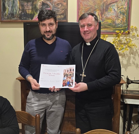 Una delegazione del Presepe Vivente di Equi Terme ha preso parte nei giorni scorsi all'incontro dei presepisti svoltosi a San Miniato, occasione di confronto e condivisione che ha visto una partecipazione significativa soprattutto dalla Toscana.Momento centrale dell'iniziativa è stata la consegna del segno di riconoscimento per la partecipazione costante al Presepe Vivente di Roma, ricevuto con grande emozione dalle mani di Rolandas Makrickas, guida della Basilica Papale di Santa Maria Maggiore. Insieme al cardinale erano presenti il cerimoniere della Basilica, Ivan Ricupero, e il vescovo della Diocesi di San Miniato, Giovanni Paccosi. Nel corso dell'incontro, Fabio Furia ha voluto consegnare al cardinale la moneta coniata del Presepe Vivente di Equi Terme, la stessa che viene tradizionalmente donata a tutti i partecipanti come segno di appartenenza e memoria condivisa dell'esperienza.Come noto, il Presepe Vivente di Roma si svolge ogni anno nel secondo fine settimana di dicembre sul sagrato della Basilica di Santa Maria Maggiore, voluto a suo tempo da Papa Francesco. L'edizione più recente ha raggiunto il traguardo della quarta edizione e Equi Terme ha partecipato con una propria delegazione, consolidando un legame ormai stabile con l'iniziativa romana.Sottolinea Fabio Furia: «Con orgoglio, e ringraziando Terre dei Presepi, guidata da Fabrizio Mandorlini, abbiamo voluto ripercorrere le tappe che ci hanno portato a questo meraviglioso traguardo, per ravvivare il ricordo delle emozioni, custodite gelosamente nel cuore, vissute nelle precedenti edizioni».Nel corso della messa che ha preceduto la cena e la consegna dei riconoscimenti, il cardinale Makrickas ha proposto una riflessione intensa sulla vicinanza a chi soffre e sul cammino di prova che conduce verso Dio. Monsignor Ricupero ha invece ripercorso il cammino organizzativo del Presepe Vivente di Roma, evidenziandone il valore ecclesiale e comunitario.