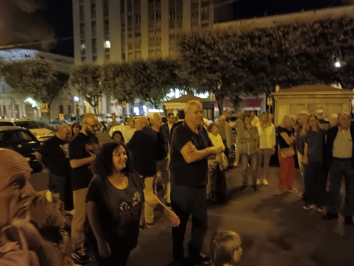 Sono arrivati in piazza Matteotti con un pullman riservato, intorno alle 20,15 di giovedì 17 settembre: il gruppo nutrito di cittadini di Avenza che fa parte del comitato Avenza Si R-Esiste ha trovato ad attenderlo diversi simpatizzanti e molti consiglieri dell'opposizione del comune di Carrara. In totale, un centinaio di persone ha partecipato al flash mob organizzato da Avenza Si R-Esiste: il secondo evento di protesta pacifica sul territorio dopo la passeggiata lungo il Murlungo ad Avenza che si è svolta a metà estate. A guidare il gruppo Michela Pinelli che ha letto un messaggio ai convenuti al centro della piazza: "Siamo davanti al Politeama Verdi chiuso da quasi 20 anni, simbolo del decadimento della città. Il 2008, anno del crollo di una ala della struttura ha segnato l'inizio della fine per la città". La Pinelli ha letto estratti dal programma elettorale del sindaco Serena Arrighi nei quali si assicurava la priorità della messa in sicurezza dei teatri cittadini per il loro definitivo utilizzo e riapertura al pubblico: " Siamo determinati a sanare il degrado in cui versa il Politeama con l'aiuto delle competenze di chi da anni lavora sul tema di rispsrse pubbliche e private" ha citato testualmente la Pinelli, che ha poi letto le dichiarazioni alla stampa, sempre del sindaco Arrighi, nel 2024, quando, con il dissequestro dell'immobile, veniva dato per certo un intervento di recupero. "Solo pochi mesi dopo - ha aggiunto la Pinelli - il sindaco Arrighi dichiarava che la situazione era troppo complicata per intervenire". Infine Michela Pinelli ha ricordato che la sentenza di condanna di due imputati e il relativo dissequestro del teatro non sono ancora definitivi perchè c'è stato il ricorso in appello e quindi il processo è ancora in corso. "Sarebbe stato opportuno che il comune, in qualità di proprietario di una porzione dell'immobile, avesse fatto qualcosa per il suo recupero" ha concluso la Pinelli, applaudita dai partecipanti al flash mob. Il gruppo ha poi osservato un minuto di silenzio, scandito dalle note de "Il silenzio" suonato da un abile trombettista. La serata si è conclusa con una cena conviviale in pizzeria di tutto il gruppo.