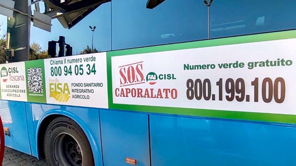 Amedeo Sabato, segretario territoriale lancia un messaggio chiaro: "Il caporalato c'è anche qui. Ma qui ci siamo anche noi.Nelle nostre province il caporalato non è un fenomeno lontano o esotico: esiste, si muove in silenzio, cambia forma e sfrutta fragilità e bisogni. La differenza è che qui non trova terreno libero: trova un sindacato presente, che parla con i lavoratori, che li incontra, che li ascolta. Portare i nostri numeri verdi sui bus significa stare accanto a chi ha più bisogno proprio nei momenti in cui è più solo. È un modo per dire: 'Se ti sfruttano, se ti pagano in nero, se ti minacciano o ti ingannano... chiama. Noi ci siamo."Parole che mettono a fuoco la missione quotidiana della FAI CISL: proteggere chi lavora, dare strumenti, offrire una via d'uscita a chi pensa di non averne. Un territorio che merita legalità e rispetto. Le province di Massa-Carrara, Lucca e Pistoia sono terre ricche di agricoltura, florovivaismo, trasformazione alimentare e piccole aziende che fanno qualità. Accanto a queste realtà virtuose, però, esistono zone d'ombra in cui alcuni intermediari senza scrupoli approfittano della vulnerabilità dei lavoratori più fragili. Contrastare il caporalato non significa solo combattere lo sfruttamento: significa difendere le imprese oneste che fanno il loro lavoro nel rispetto delle regole e della dignità umana.