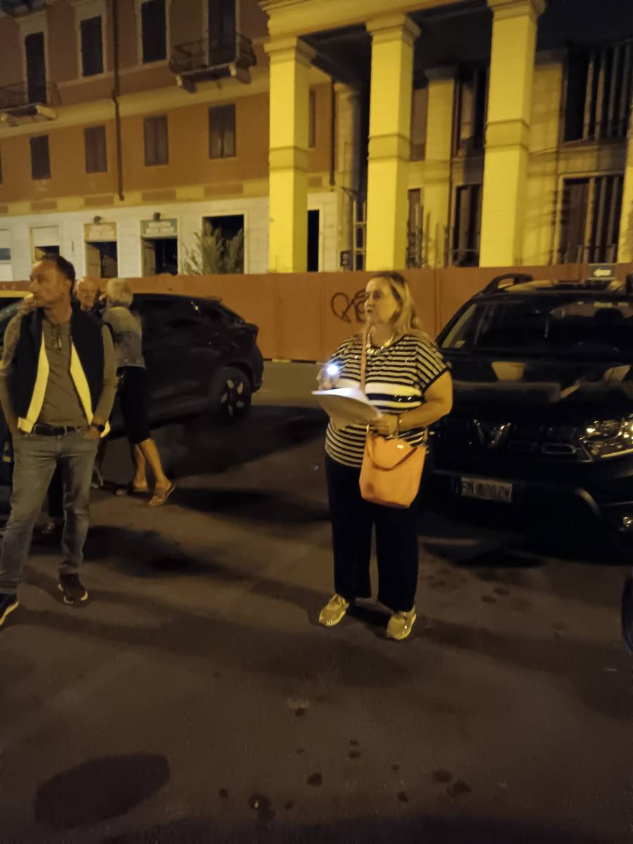 Sono arrivati in piazza Matteotti con un pullman riservato, intorno alle 20,15 di giovedì 17 settembre: il gruppo nutrito di cittadini di Avenza che fa parte del comitato Avenza Si R-Esiste ha trovato ad attenderlo diversi simpatizzanti e molti consiglieri dell'opposizione del comune di Carrara. In totale, un centinaio di persone ha partecipato al flash mob organizzato da Avenza Si R-Esiste: il secondo evento di protesta pacifica sul territorio dopo la passeggiata lungo il Murlungo ad Avenza che si è svolta a metà estate. A guidare il gruppo Michela Pinelli che ha letto un messaggio ai convenuti al centro della piazza: "Siamo davanti al Politeama Verdi chiuso da quasi 20 anni, simbolo del decadimento della città. Il 2008, anno del crollo di una ala della struttura ha segnato l'inizio della fine per la città". La Pinelli ha letto estratti dal programma elettorale del sindaco Serena Arrighi nei quali si assicurava la priorità della messa in sicurezza dei teatri cittadini per il loro definitivo utilizzo e riapertura al pubblico: " Siamo determinati a sanare il degrado in cui versa il Politeama con l'aiuto delle competenze di chi da anni lavora sul tema di rispsrse pubbliche e private" ha citato testualmente la Pinelli, che ha poi letto le dichiarazioni alla stampa, sempre del sindaco Arrighi, nel 2024, quando, con il dissequestro dell'immobile, veniva dato per certo un intervento di recupero. "Solo pochi mesi dopo - ha aggiunto la Pinelli - il sindaco Arrighi dichiarava che la situazione era troppo complicata per intervenire". Infine Michela Pinelli ha ricordato che la sentenza di condanna di due imputati e il relativo dissequestro del teatro non sono ancora definitivi perchè c'è stato il ricorso in appello e quindi il processo è ancora in corso. "Sarebbe stato opportuno che il comune, in qualità di proprietario di una porzione dell'immobile, avesse fatto qualcosa per il suo recupero" ha concluso la Pinelli, applaudita dai partecipanti al flash mob. Il gruppo ha poi osservato un minuto di silenzio, scandito dalle note de "Il silenzio" suonato da un abile trombettista. La serata si è conclusa con una cena conviviale in pizzeria di tutto il gruppo.