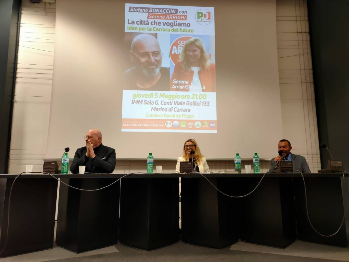 Grande attenzione, durante l'incontro, è stata dedicata al tema del lavoro e all'importanza di trattenere i talenti in città, evitando fughe di giovani alla ricerca di nuove e migliori opportunità professionali. "Come trattenere i giovani? Garantendo loro opportunità post-scuola" ha spiegato Arrighi, specificando poi di "voler creare due incubatori: uno dedicato all'arte, destinato a sostenere start up e giovani artisti, e l'altro incentrato sulla tecnologia, per sostenere giovani imprenditori che vorranno dedicarsi al mondo dell'innovazione". L'altro fronte su cui lavorare per creare occupazione, secondo la candidata del centrosinistra, è quello che punta a preservare l'esistente. "Dobbiamo fare il grande sforzo di immaginare l'evoluzione di settori chiave, quali marmo e nautica, per cercare di posizionarci prima degli altri nei mercati che si creeranno. Nel lapideo si deve iniziare a pensare ai nuovi materiali del marmo e alla robotica, mentre nella nautica avremo a breve il travel lift, ovvero l'impianto per mettere in mare le imbarcazioni realizzate nell'area apuana, che ci consentirà di completare la filiera. Infine, in questo territorio abbiamo un problema che riguarda le aree da mettere a disposizione per gli impianti. Stiamo facendo però importanti bonifiche, e finalmente nel 2023 dovremmo avere 17 ettari disponibili".