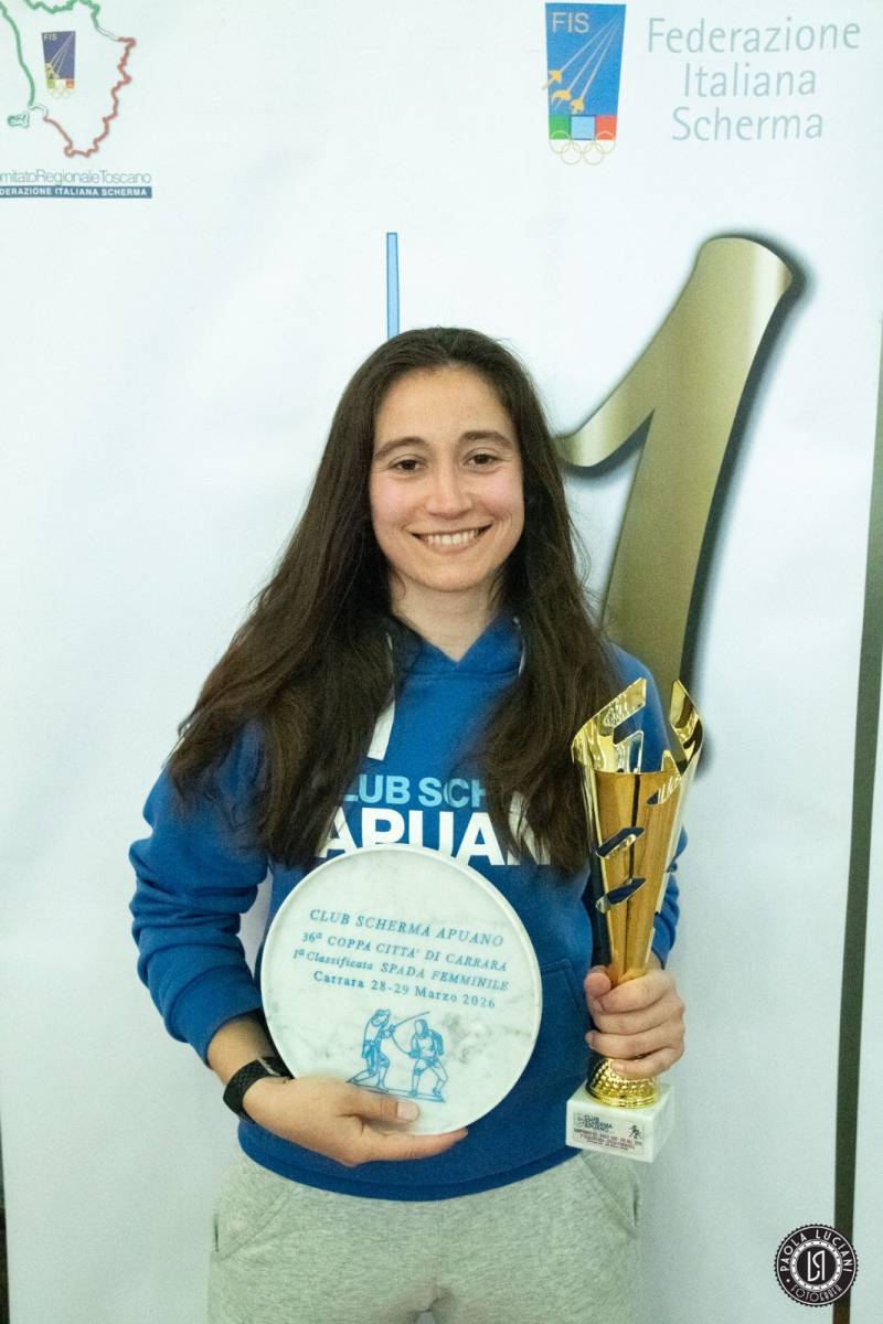 Il Club Scherma Apuano festeggia un prestigioso successo nella prova di spada femminile della Coppa Città di Carrara, disputata lo scorso weekend negli spazi dell’I.M.M. Carrarafiere. A conquistare la vetta del podio è stata Isabella Panzera, atleta e istruttrice del club, che si è aggiudicata l’ambito trofeo in marmo, simbolo storico della manifestazione apuana. La vittoria è maturata al termine di una gara iniziata con qualche incertezza nella fase a gironi, pur mantenendo Isabella nelle prime posizioni della classifica provvisoria. Nelle eliminazioni dirette, invece, l’atleta apuana ha imposto un ritmo deciso, inanellando una serie di vittorie nette fino ad approdare alle fasi finali. Emozionanti gli assalti di semifinale e finale, affrontati rispettivamente contro Sabrina Becucci (Scherma Pistoia 1894) e Chiara Cimini (Club Scherma Pisa Antonio Di Ciolo): due assalti combattuti, segnati da spettacolari rimonte da uno svantaggio iniziale e risolti entrambi con la stoccata decisiva segnata nel minuto supplementare. Con questo risultato, Isabella Panzera si aggiudica la trentaseiesima Coppa Città di Carrara e si qualifica come prima atleta toscana alla fase nazionale Gold, in programma ad aprile. Non potrà però partecipare alla competizione, essendo già impegnata a livello internazionale nella scherma storica con il prestigioso Paris HEMA Open, torneo che ospiterà alcuni dei più forti schermitori storici del mondo.