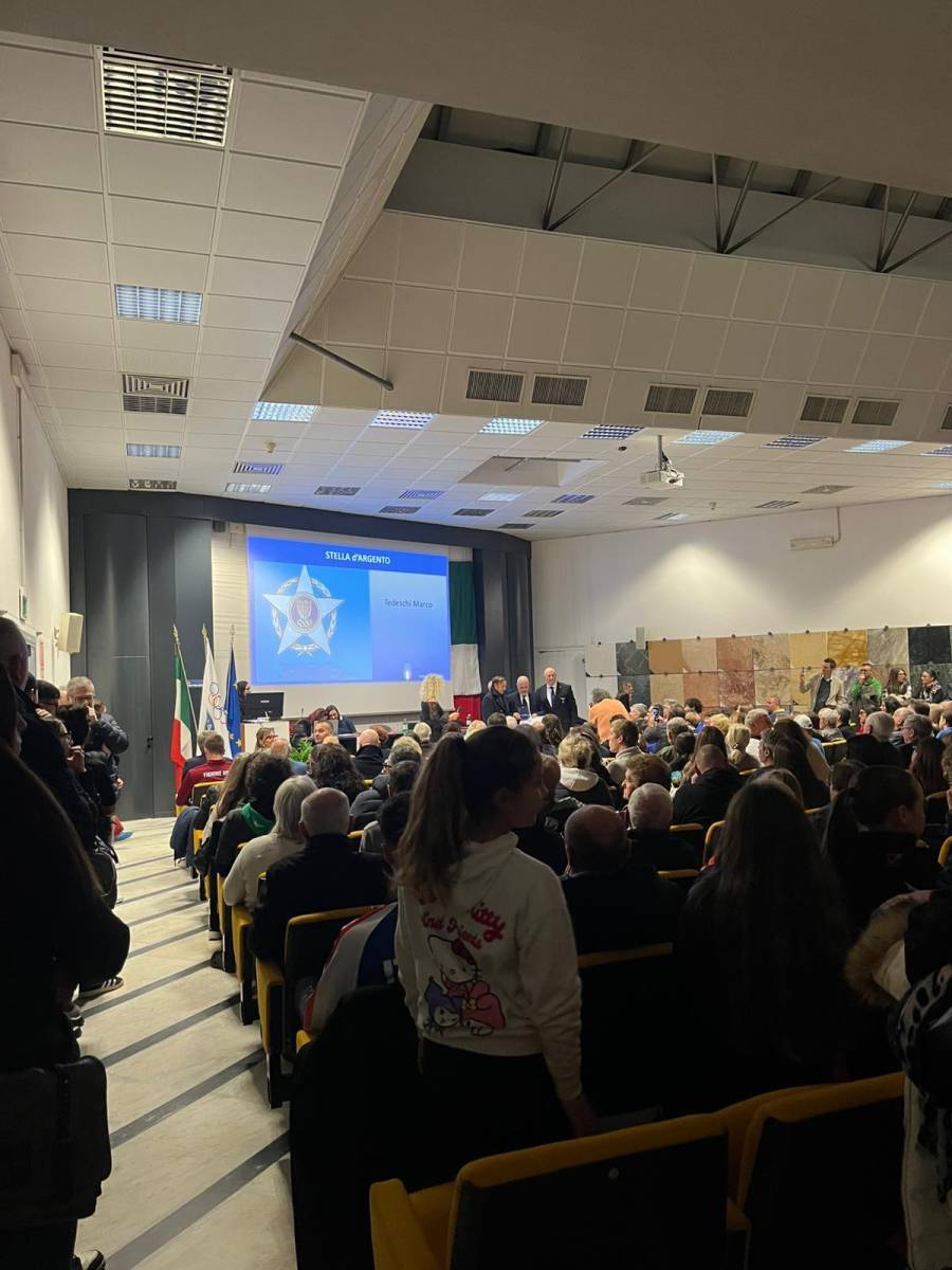 Oltre 300 persone del mondo sportivo provinciale hanno partecipato, giovedì 20 novembre, alla Giornata delle Benemerenze CONI che si è tenuta nella sala Giulio Conti di Nausicaa. L’evento, organizzato dal CONI Point di Massa Carrara, è l’appuntamento annuale che premia gli sforzi degli atleti apuani a tutti i livelli ed ha avuto un parterre di ospiti da grandi occasioni con tutte la massime Autorità sportive, militari, civili della provincia presenti dall'inizio alla fine dell'intera cerimonia. Oltre al presidente del CONI regionale dottor Simone Cardullo, hanno partecipato il Questore Bianca Venezia, il primo dirigente del commissariato Pietro Scaramella, il Comandante provinciale dell'Arma del Carabinieri colonello Alessandro Dominici, il presidente della fondazione CRC dottor Enrico Isoppi, il sindaco di Carrara Serena Arrighi, gli assessori allo sport di Carrara Lara Benfatto e di Massa Roberto Acerbo, il delegato allo sport di Montignoso Stefano Del Giudice, il presidente di Nausicaa Antonio Valenti con la direttrice Lucia Venuti, l'assessore alle partecipate Carlo Orlandi con l'assessore ai progetti speciali Moreno Lorenzini e l'instancabile Mirella Cocchi, l’amministratore delegato della Carrarese 1908 Jacopo Pasciuti e il direttore generale area giovanile Umberto Pisano. La cerimonia si è aperta con un emozionante video delle Frecce Tricolori accompagnato dal nostro inno nazionale. Successivamente ha preso la preso la parola il Delegato CONI Vittorio Cucurnia , come sempre visibilmente emozionato ed estremamente sintetico, a seguire dei concisi interventi delle Autorità tra cui ha spiccato quello del Presidente CONI regionale Cardullo che ha pubblicamente sottolineato come sia stato colpito da una sala tanto gremita e partecipata ed ha ricordato che tutte le cerimonie di Massa Carrara sono sempre state così sentite da parte di tutti. Complimenti che hanno meritato uno scrosciante applauso da parte del numerosissimo pubblico. Nello specifico ecco gli atleti premiati: dal CONI nazionale medaglia d'oro a Samuele Angelini campione mondiale duathlon a squadre ; medaglia d'argento a Luca Matellini campione europeo Taekwondo ; medaglie di bronzo a Valter Basteri campione italiano tiro con l'arco, Daniele Bruni campione italiano tiro con l'arco, Diego Calistri campione italiano Ebike , Samuele Ceccarelli campione italiano atletica leggera , Stefano Cini campione italiano tiro con l'arco, Gazmir Gjishti campione italiano tiro dinamico, Claudio Grande campione italiano pugilato, Linda Politi campionessa italiana judo. Poi la volta delle Stelle d'Argento al Merito Sportivo assegnate a Guglielmo Bellotti tennis tavolo , Massimo Petriuccioli tennis tavolo, Marco Tedeschi pallavolo. Si è passati poi ai premi del CONI Point Massa Carrara . Premio speciale Coni Point al professor Romano Del Monte da sempre grande personaggio del mondo della pallavolo. Dopo si è passati ai premi "Memorial Enrico Salomoni" : alla ASD Ginnastica Artistica Apuana Marta Bertoneri, Emma Manfredi, Nora Piccini, Alice Rossi ; ASD Le Maripose Massa Emma Aliboni e Viola Nicolini ; ASD Polisportiva Apuana Carrara con Giulia Fusani Matilde Furia ; ASD My Rhythm Carrara con Greta Magni e Margherita Menconi ; ASD Ginnastica Ritmica Sportiva Massa con Alleysha Bonuccelli; infine la campionessa italiana Ester Lena. A seguire la ASD Rotellistica Apuana con Eva Castiglione e Sole Palmeri . Si prosegue con tennis tavolo Apuania Under 13 Enrico Donati, Ethan Simonetti, Francesco Morelli, Davide Mussi. Danza Sportiva ASD Luni Danza con Emma Pasqualini. Carrarese Calcio 1908 , squadra femminile Under 15 completa , con la loro allenatrice Valentina Buttini . AICS gruppo Impicci per danza Hip Pop con Melissa Incorvaia, Virginia Bertoni, Samuel Frugoni, Sofia Pierotti, Gabriele Meta, Riccardo Morelli, Emma Tognari, Angel Giuntoni. Poi è la volta del Club Nautico Marina di Carrara col tennis e Lara De Pellegrin , poi nuoto con Emmanuela Leu, e per la vela optimist il più giovane atleta della cerimonia , il campione in erba Valerio Pucci di nove anni. Si passa poi ai premi "CONI MASSA CARRARA" ; per il rafting a Marianna Tedeschi, accompagnata da un gran bel video a sorpresa; poi alla ASD Skating Club Massa con Maria Sole Pellegrini, al tennis tavolo ASD Apuania con Arianna Ussi campionessa Under 21; pugilato Pugilistica Carrarese con Mia Paita e Sophia Pam Terenzoni, per tornare al Club Nautico barche a vela con Luca Scopsi e Edoardo Porchera ; nuoto con Lara Pelliccia; tutta la squadra Pallavolo Massa Carrara per la promozione in serie B . A seguire Polisportiva Pontremolese per la pesca sportiva con Pietro Dellacha ; dirigente sportivo e consigliere comunale Aulla Feder Kombat Alessandro Andellini con le sorelle Ilaria e Valeria Sergi. La cerimonia si è chiusa con i premi ai ragazzi partecipanti al Trofeo Coni 2025 di Lignano Sabbiadoro Anita Elisei tiro a segno; Achille Bondielli, Lorenzo Maltana, Christian Carlo Tonini per il football flag e per l'atletica Marble Heart Alessandro Rachiv e Martino Urzia.
